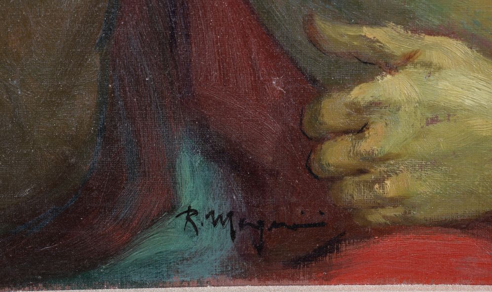 RENZO MAGNANINI (Gonzaga 1920 – Bentivoglio 2006) "Donna con bambino". Olio...