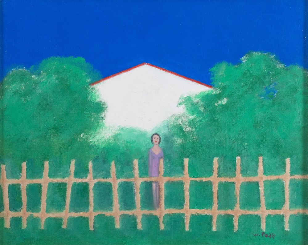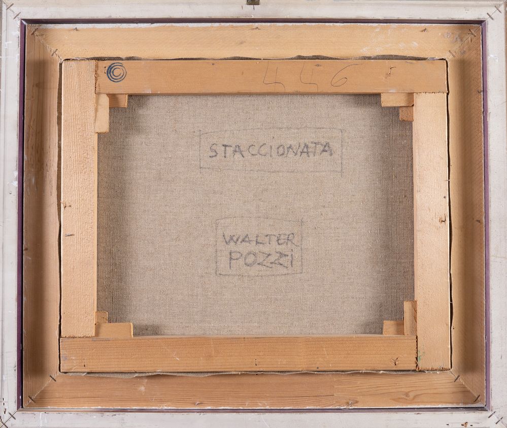 WALTER POZZI (1911 – 1989) "Staccionata". Olio su tela. Cm 40x50. Opera firmata in basso a destra W. Pozzi. Al retro opera intitolata e firmata Staccionata, Walter Pozzi.