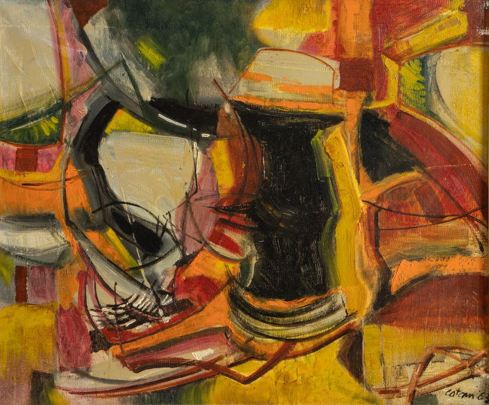 ROBERTO CATANI (1928) "Teschio sul tavolo", 1963. Olio su tela. Cm 50x60. Opera firmata e datata in basso a destra Catani '63.