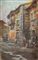 EUGENIO ANDREASI (Lecco 1859 – Venezia c.1950) "Villaggio animato". Olio su tavola. Cm 30x20. Al retro reca etichetta dell'Istituto Nazionale di Cultura Fascista, sottosezione Lecco.