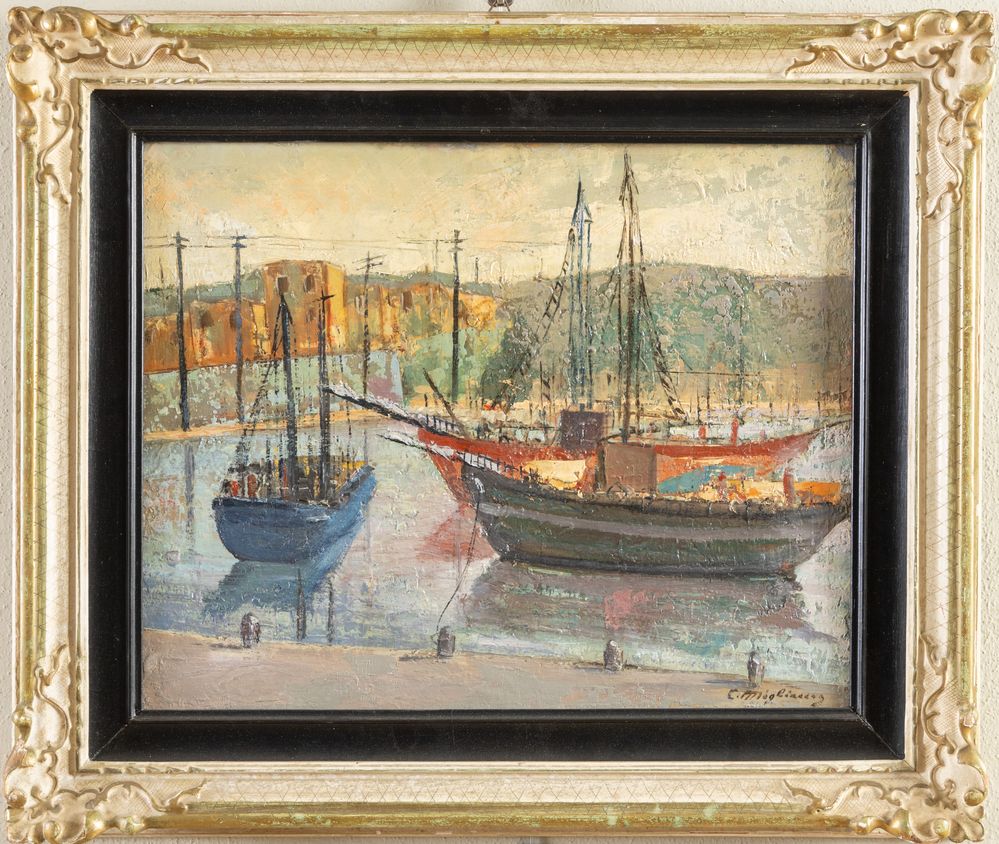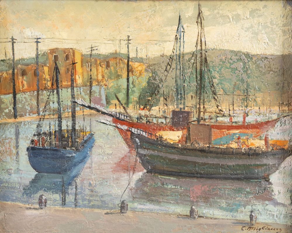 C. MIGLIACCIO (XX secolo) "Barche". Olio su tavola. Cm 39x50. Opera firmata in basso a destra C. Migliaccio.
