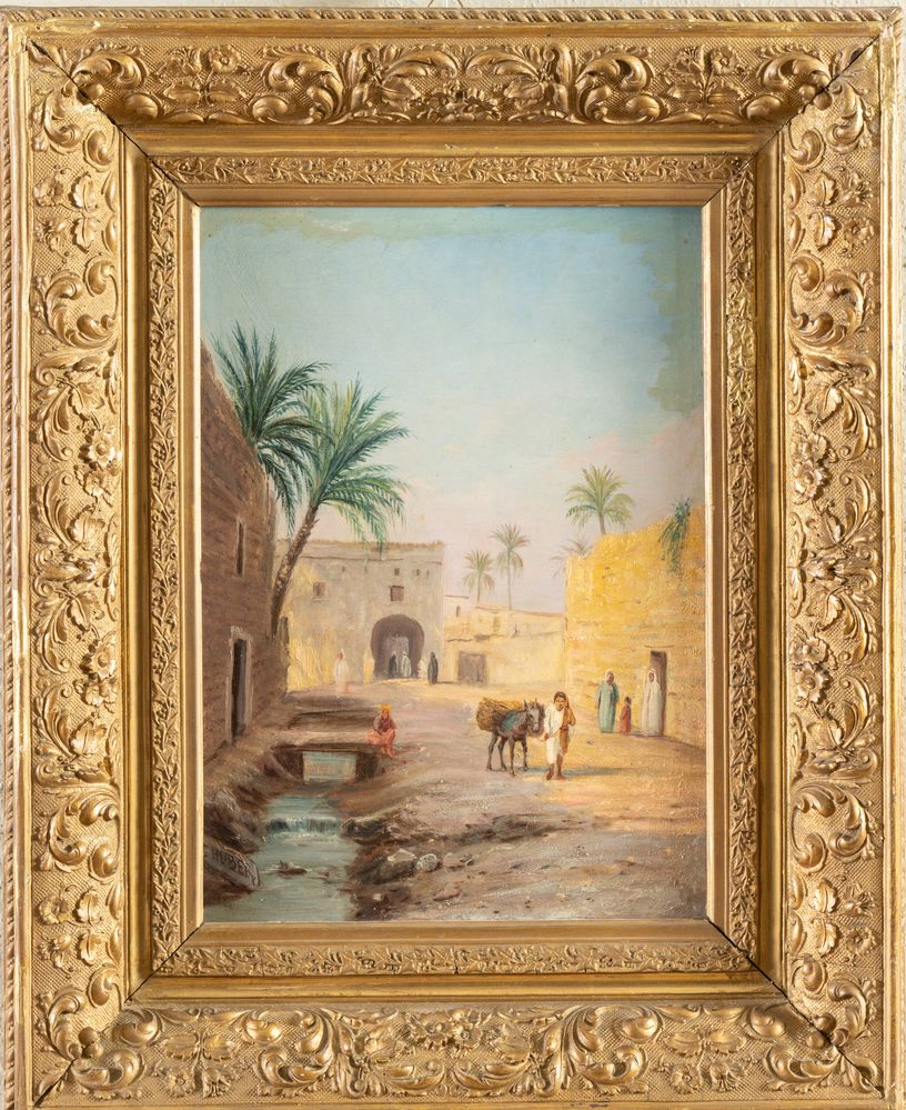 ERNST HUBER (Vienna 1895 – 1960) "Vita a Biskra". Olio su tavola. Cm 33x24. Opera firmata in basso a sinistra E. Huber.