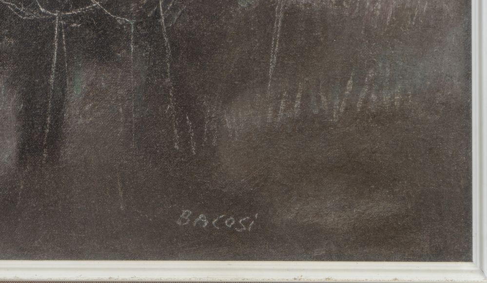 MANLIO BACOSI (Perugia 1921 – 1998) "Paesaggio". Olio su tela. Cm 80x60. Opera firmata in basso al destra Bacosi.