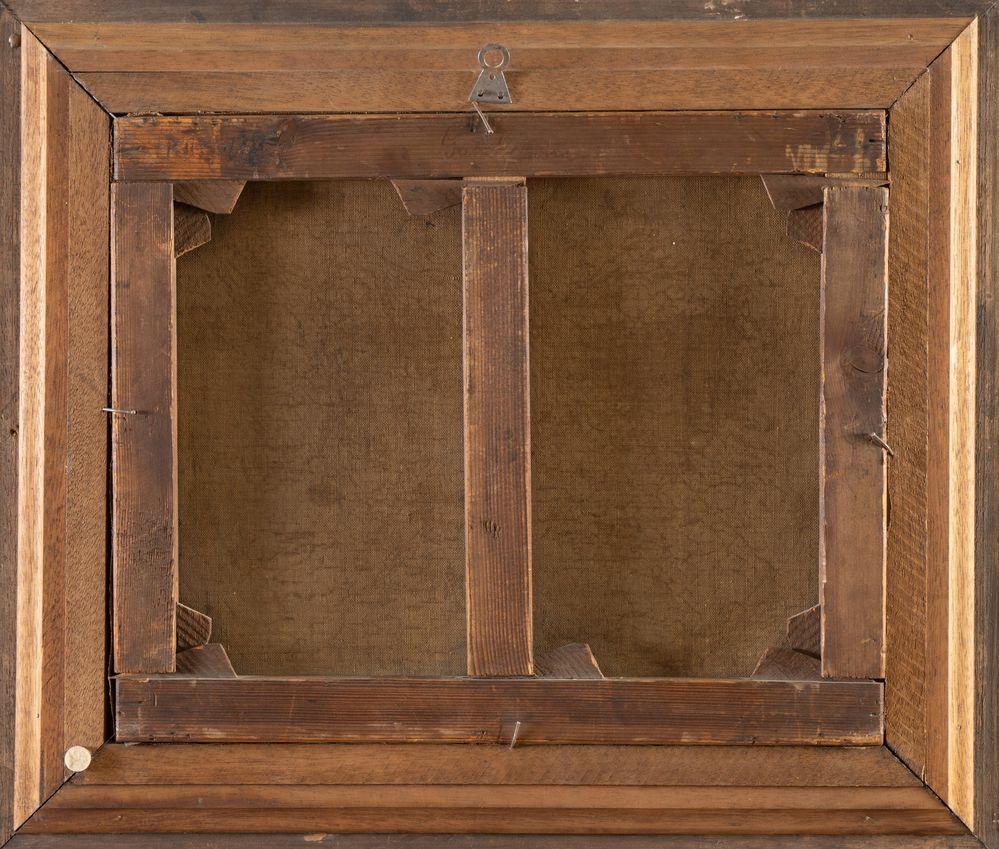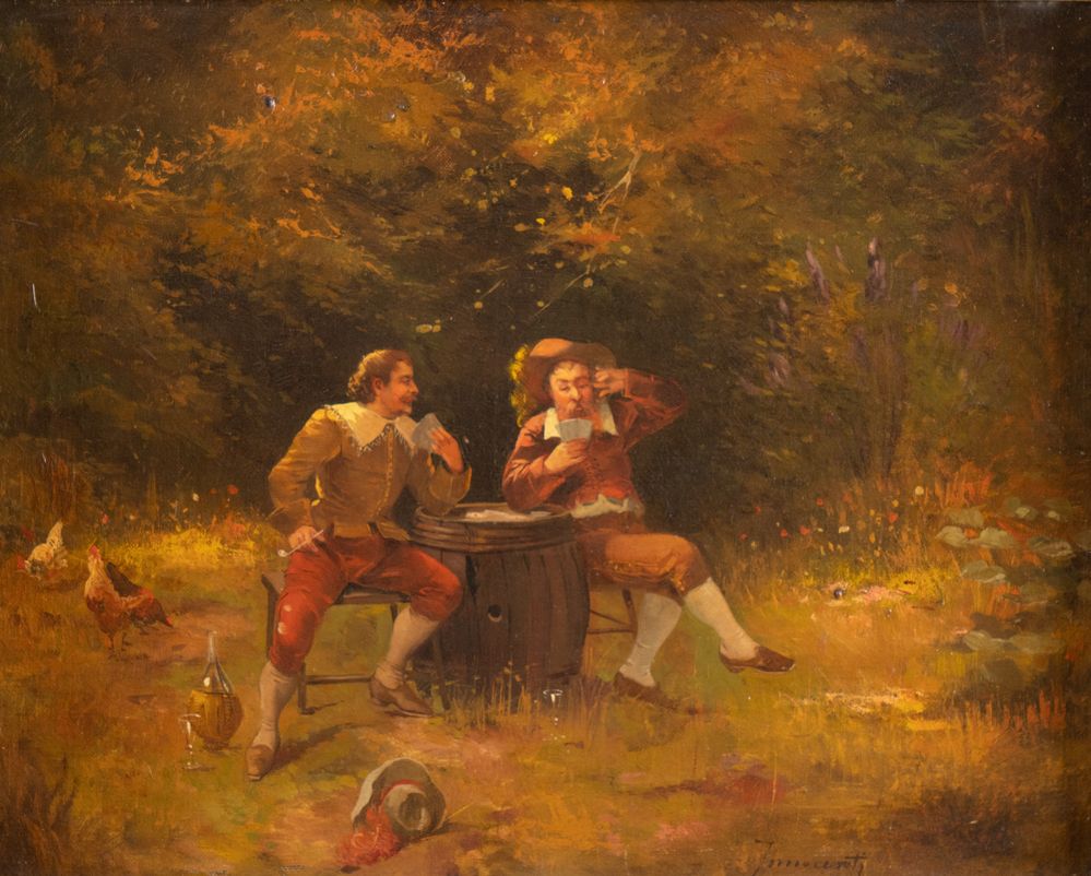 GUGLIELMO INNOCENTI (1871 – 1961) "Giocatori di carte in un paesaggio". Olio...
