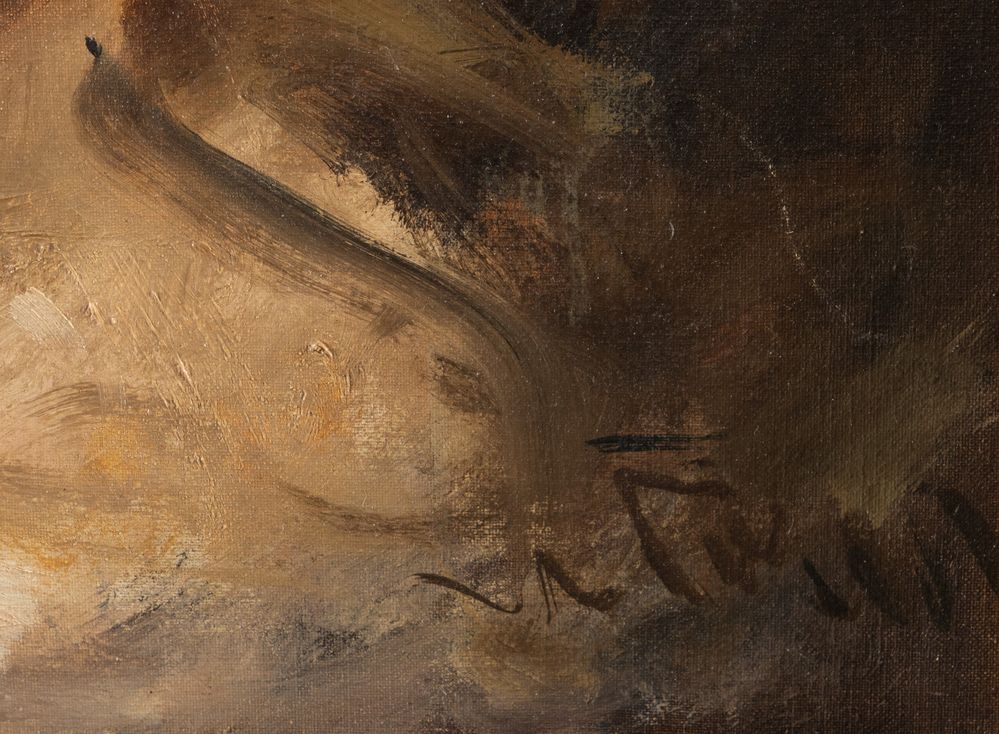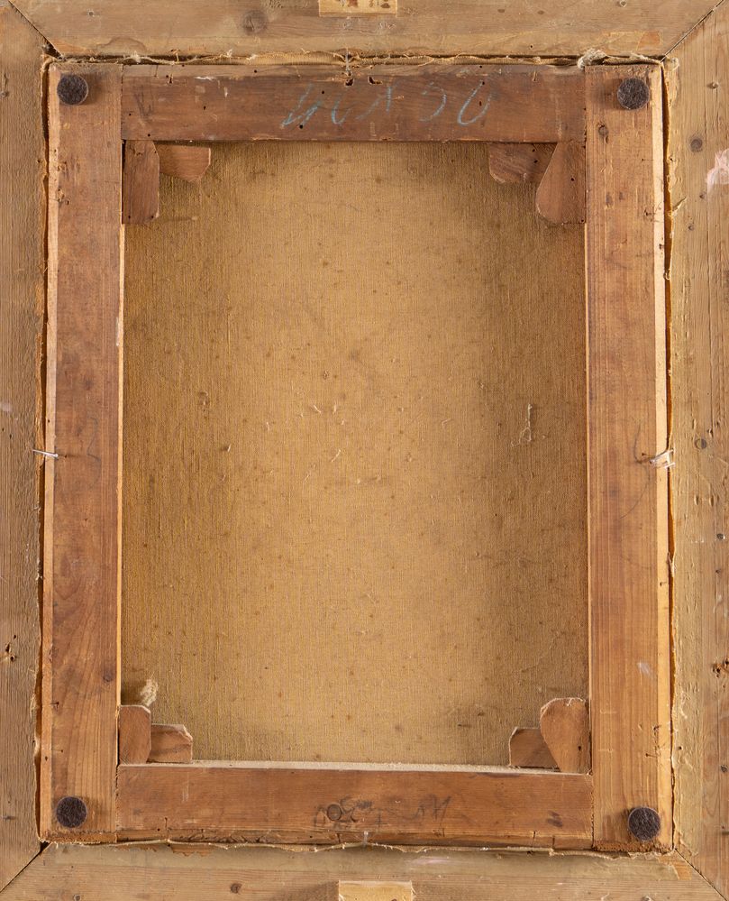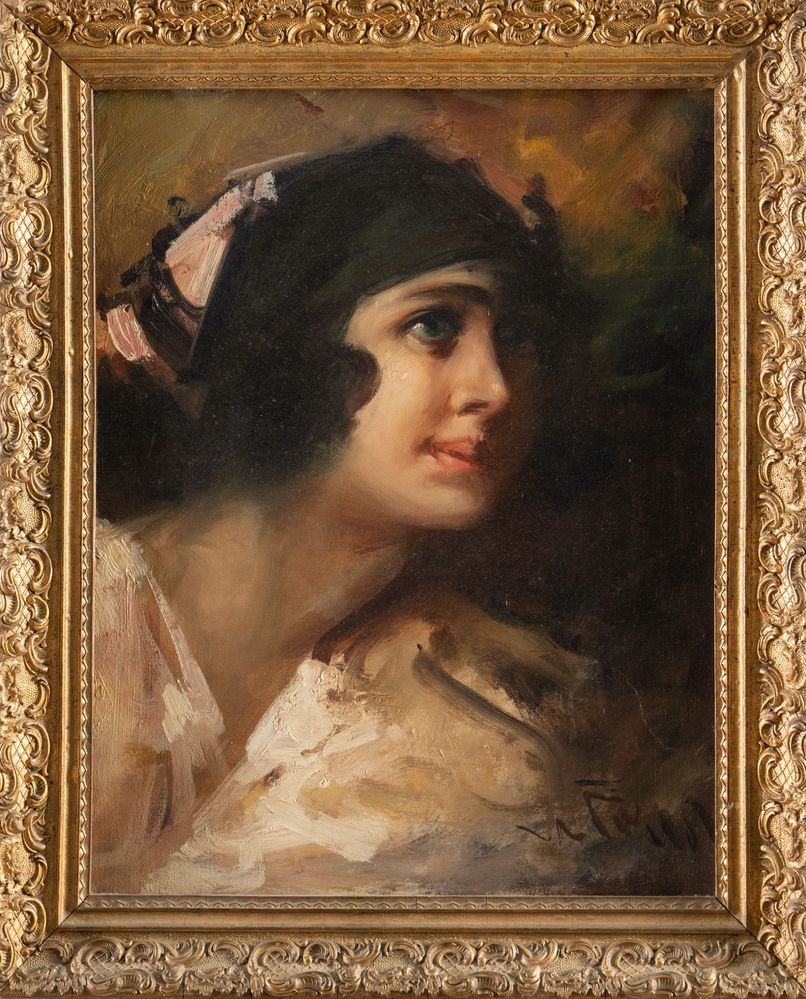 MARIO POBBIATI (Milano 1887 – 1956) "Il fiocco rosa". Olio su tela. Cm 50x40. Opera firmata in basso a destra Pobbiati.