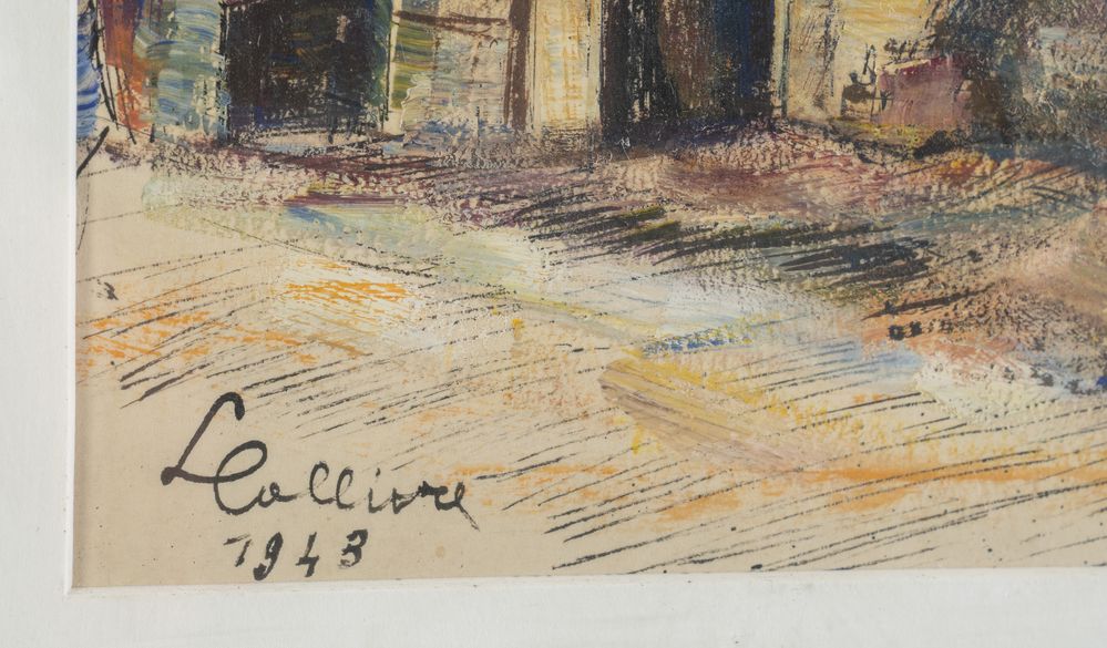 LEA COLLIVA (Bologna 1901 – 1975) "Paesaggio", 1943. Tecnica mista su carta....