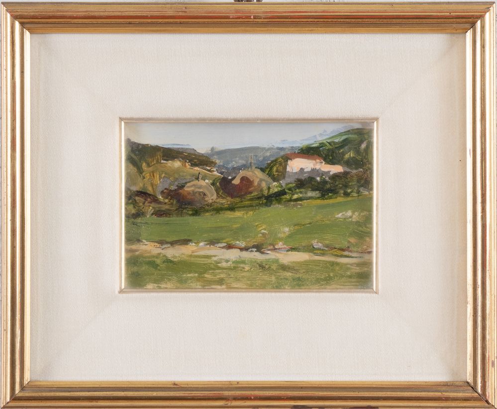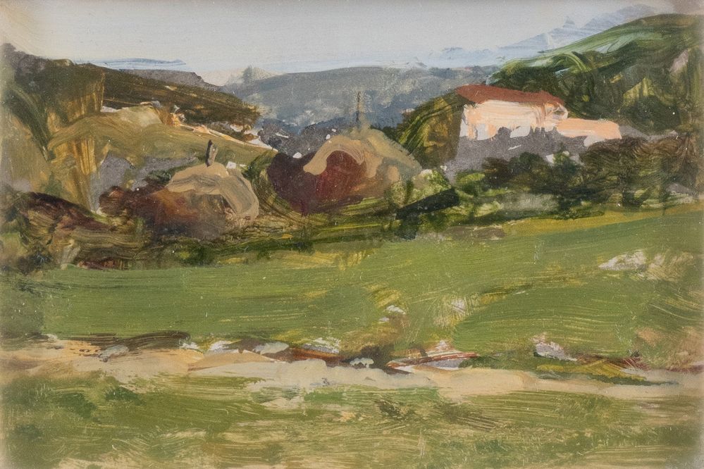 GUGLIELMO PIZZIRANI (Bologna 1886 – 1971) "Paesaggio montano". Olio su faesite. Cm 12x16,8. Al retro opera firmata G. Pizzirani.