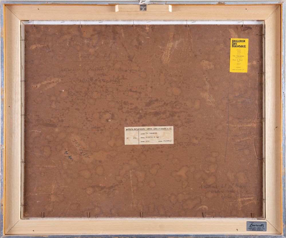 PIO SEMEGHINI (Quistello 1878 – Verona 1964) "Ritratto di Agy", 1947. Olio su cartone. Cm 49,5x60,5. Opera firmata in basso a destra Semeghini. Al retro reca etichette della Galleria del Girasole, Udine. Al retro reca iscrizione per autentica a firma della moglie Gianna Semeghini in data 5 Dicembre 1967. Al retro reca iscrizione per autentica a firma del Prof. Licisco Magagnato in data 5 Dicembre 1967. Provenienza: Collezione Ida Geiger, Venezia; collezione privata, Bologna.