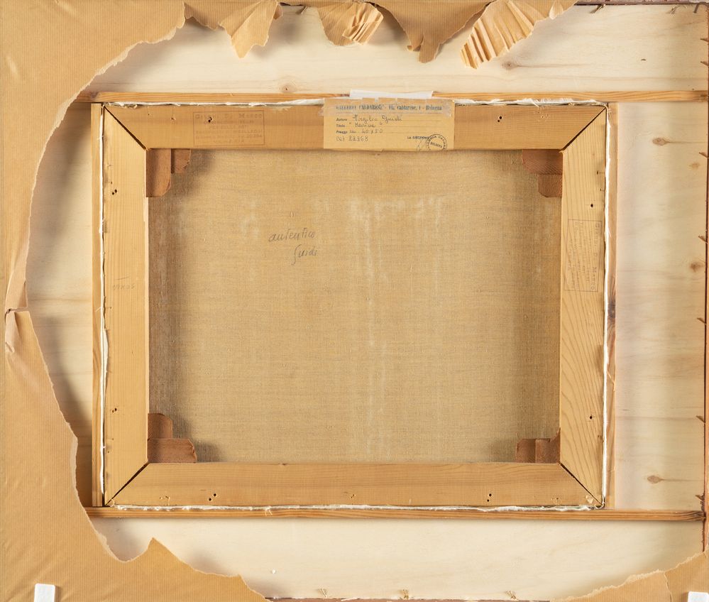 VIRGILIO GUIDI (Roma 1891 – Venezia 1984) "Venezia", anni '60. Olio su tela. Cm 40x50. Opera firmata in basso a destra Guidi. Al retro reca scritta per autentica a firma del pittore. Al retro reca etichetta della Galleria Caldarese, Bologna, con timbro e firma. Opera accompagnata da autentica su fotografia a firma del pittore.