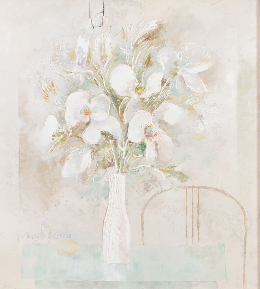 VICENTIU GRIGORESCU (Bucarest 1923 – Castelnuovo Magra 2012) "Senza titolo". Olio su tela. Cm 100x90. Opera firmata in basso a sinistra Vincentiu Grigorescu. (difetti)