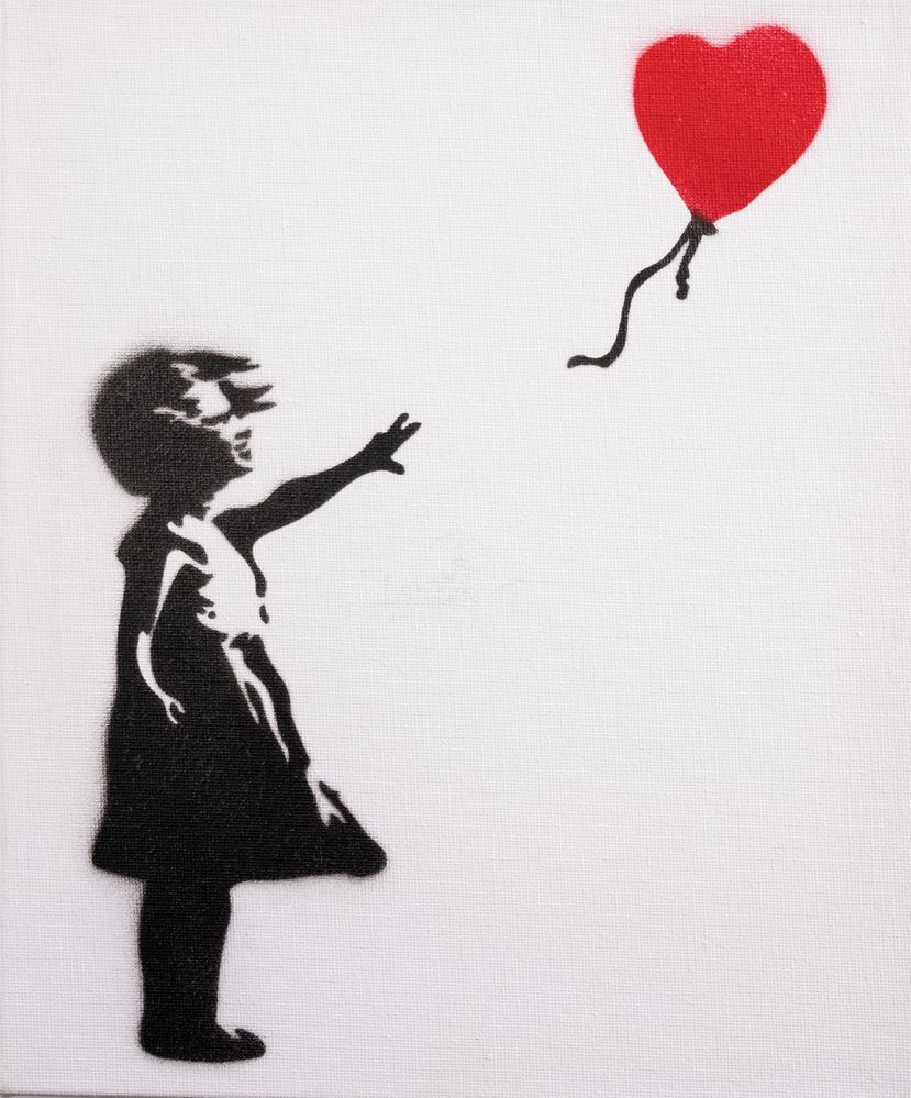 BANKSY (Bristol 1974) "Dismaland", 2015. Spray su tela. Cm 30x24. Al retro reca timbro Dismaland.