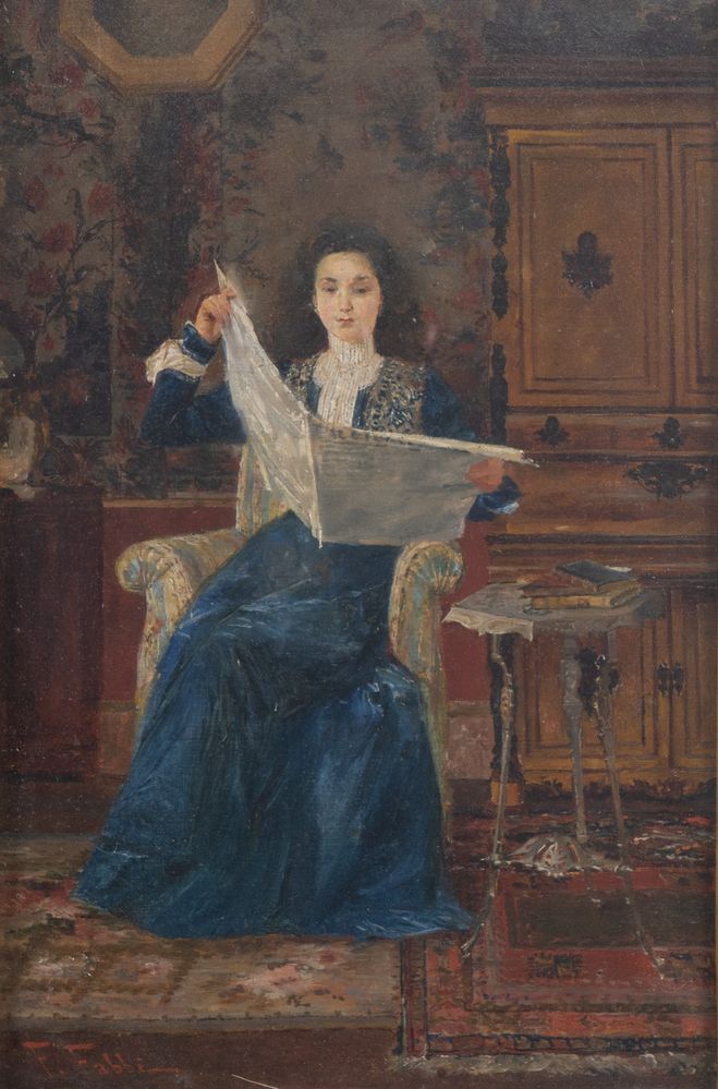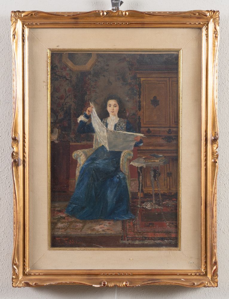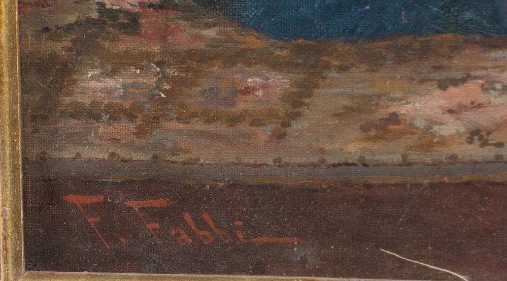 FABIO FABBI (Bologna 1861 – Casalecchio di Reno 1946) "Ritratto". Olio su tela. Cm 45x30. Opera firmata in basso a sinistra F. Fabbi.