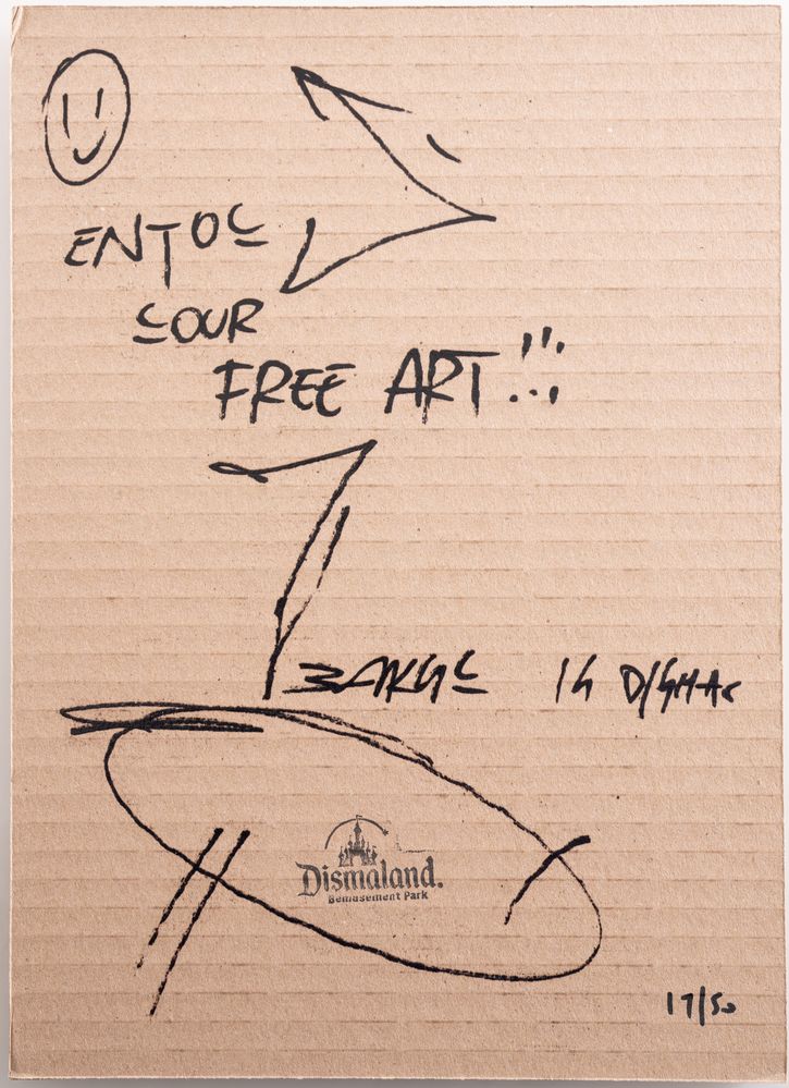 BANKSY (Bristol 1974) "Dismaland", 2015. Spray su cartone. Cm 30x21. Opera firmata in basso a destra Banksy. Al retro reca numeri di tiratura 17/50 e timbro Dismaland.