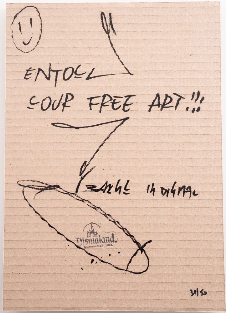 BANKSY (Bristol 1974) "Dismaland", 2015. Spray su cartone. Cm 30x21. Opera...
