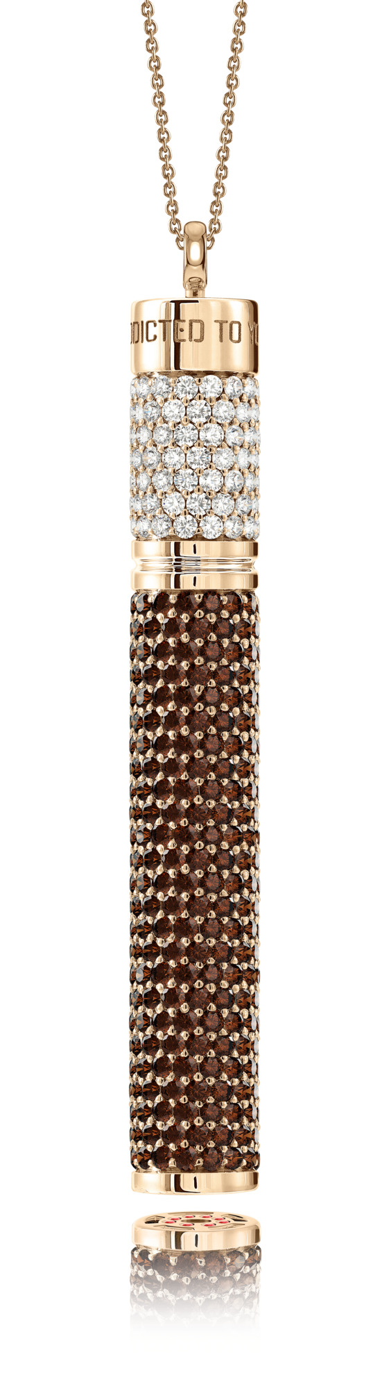 ADDICTED TO YOU è la scritta manifesto firma d’autore di NESS1. Una dichiarazione d’amore in tutte le sue forme. Per sé stessi è un invito a tornare a contare sulla propria forza interiore e nelle proprie capacità. Se regalato, è un potentissimo messaggio ad amore con cui si afferma: “Mi dai dipendenza, sei la mia cura, la mia medicina”. Il masterpiece per eccellenza: sua maestà CIG.AU.RETTE. Il pendente più iconico dell’intera collezione, un capolavoro del lusso e del design che evoca gestualità senza tempo e giochi di raffinata seduzione. Una provocatoria raccomandazione a non mandare la propria vita in fumo ma, al contrario, ad assaporarne ogni momento, un respiro dopo l’altro.