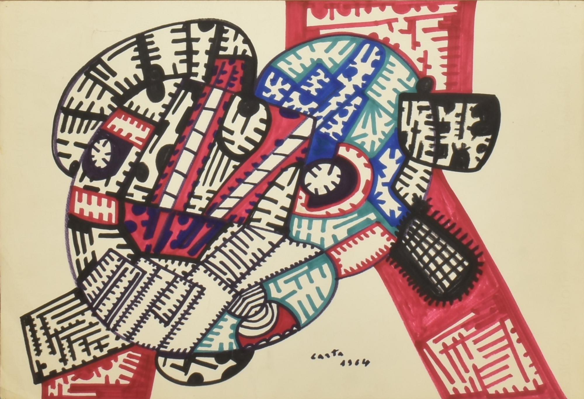 Sebastiano Carta (1913 - 1973) COMPOSIZIONE, 1964 penna a feltro su carta, cm 33x48...