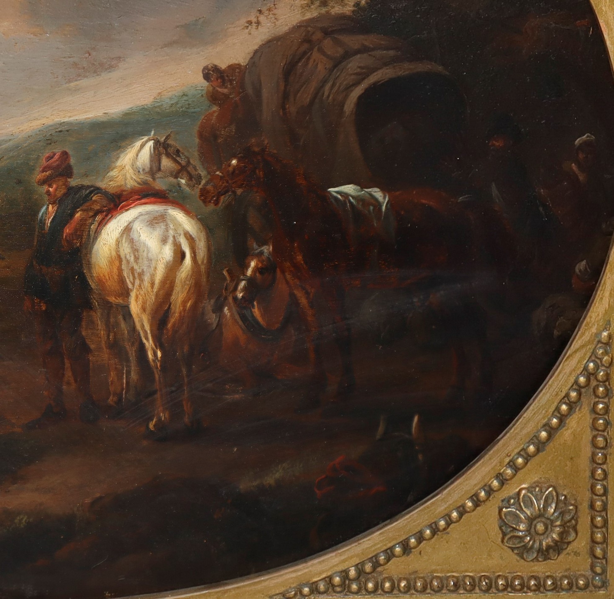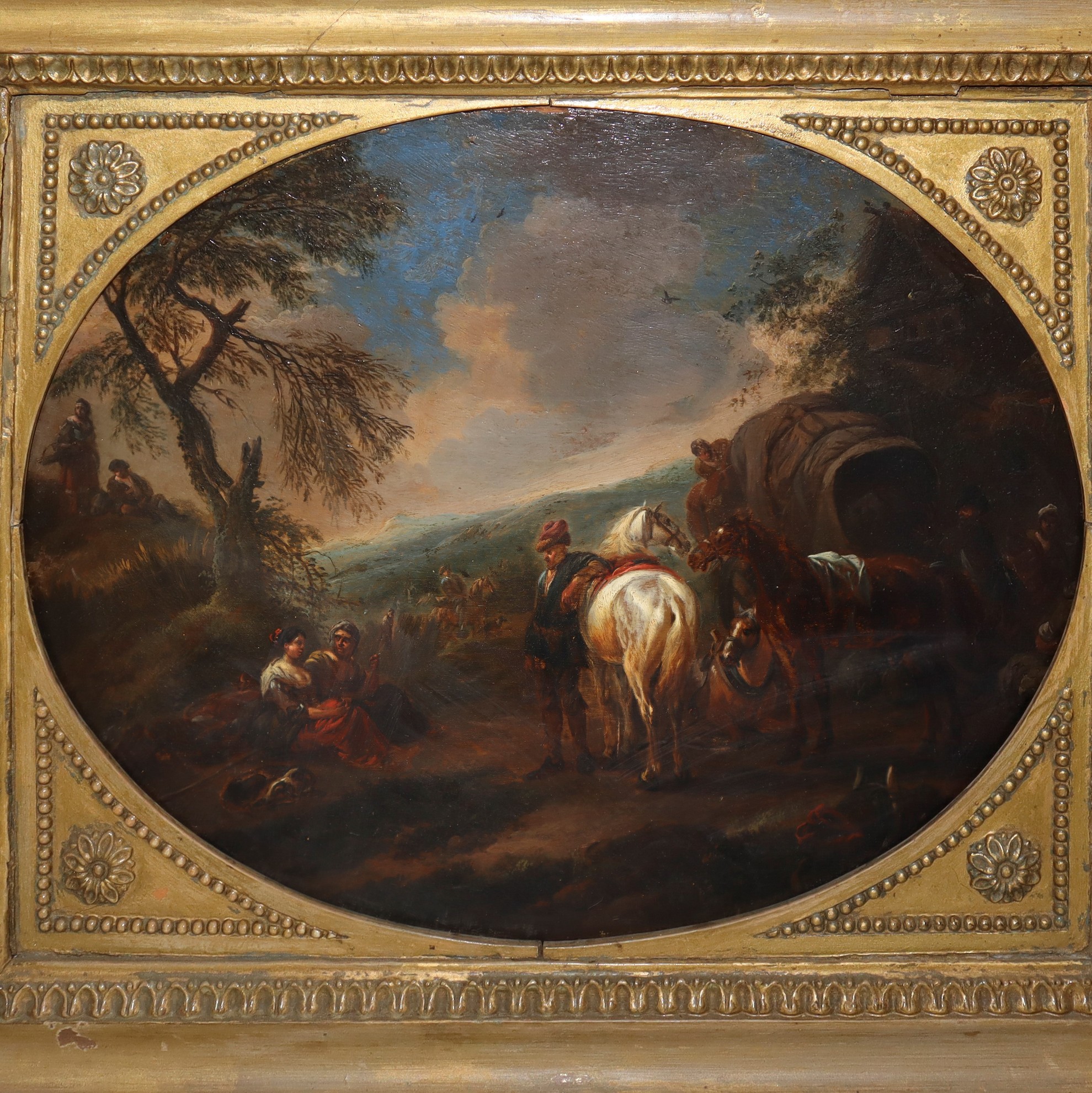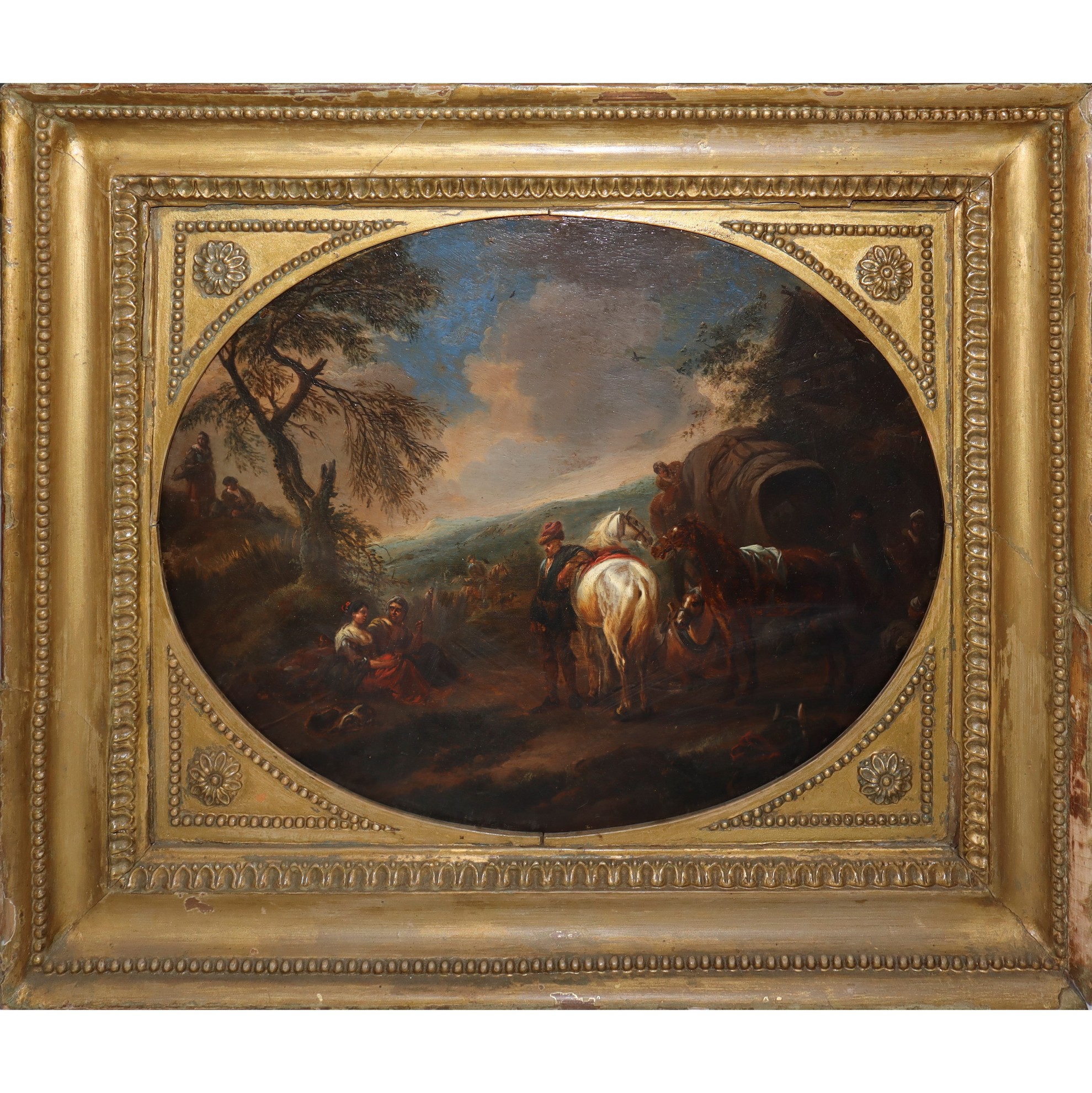 Sosta di viaggiatori con cavalli, XVII Secolo