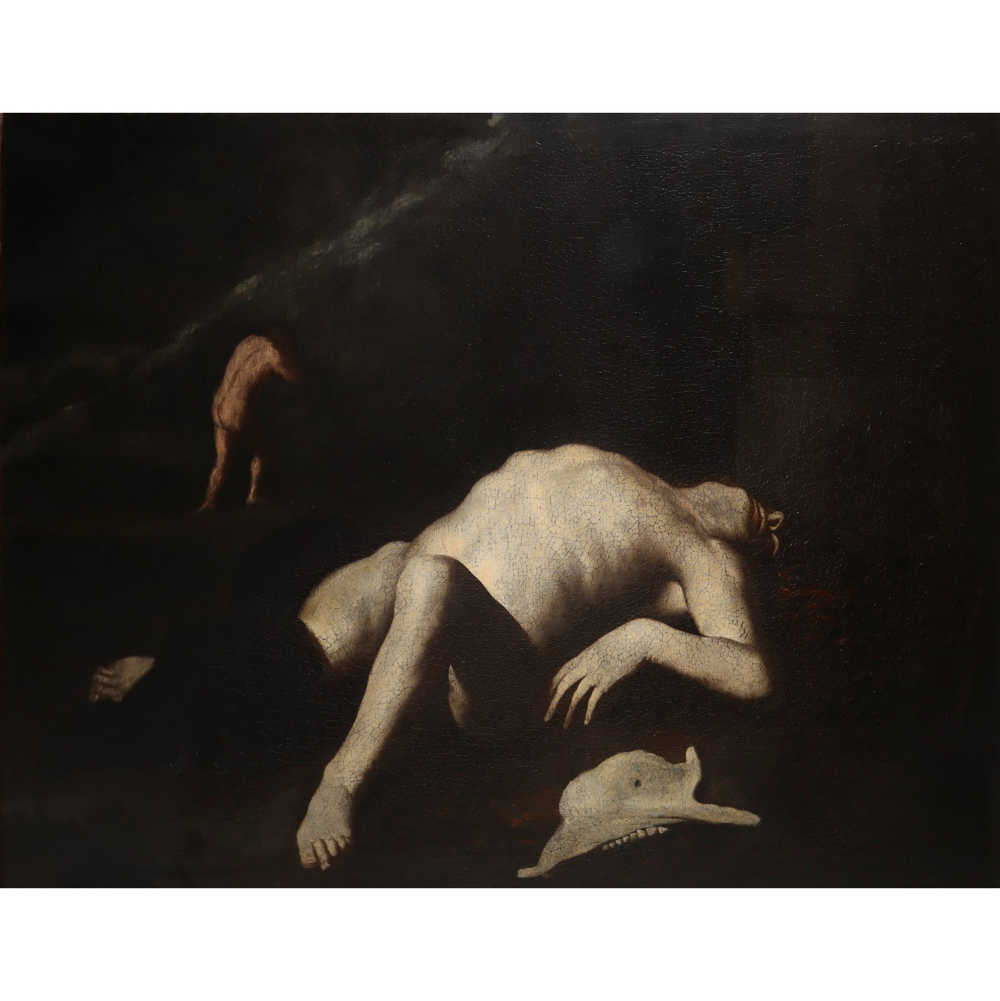 nell’oscurità profondissima, magnificamente contrastante con l'accecante chiarore della mandibola d’asino con la quale Caino, nel racconto biblico,