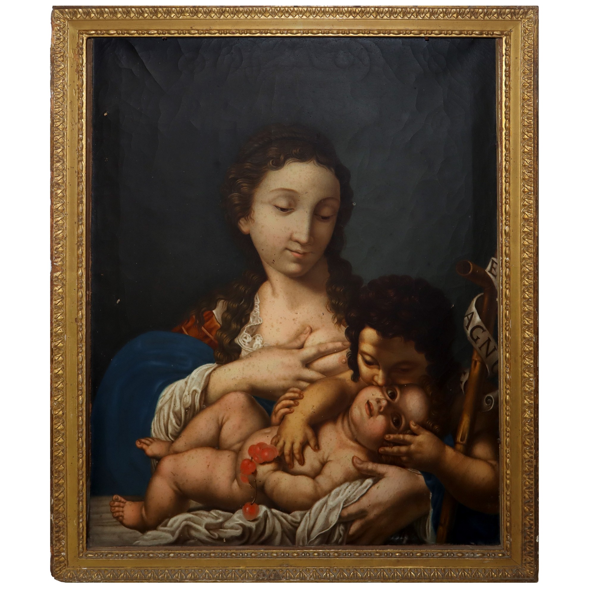 Madonna del latte con bambino e San Giovannino, XVIII / XIX Secolo H cm 71 x 58 / in cornice 78 x 65 Olio su tela Prima tela