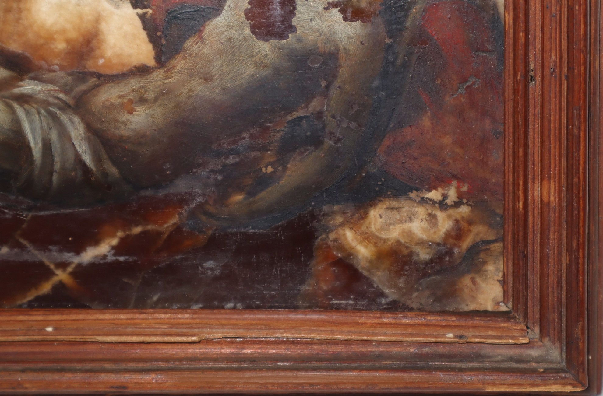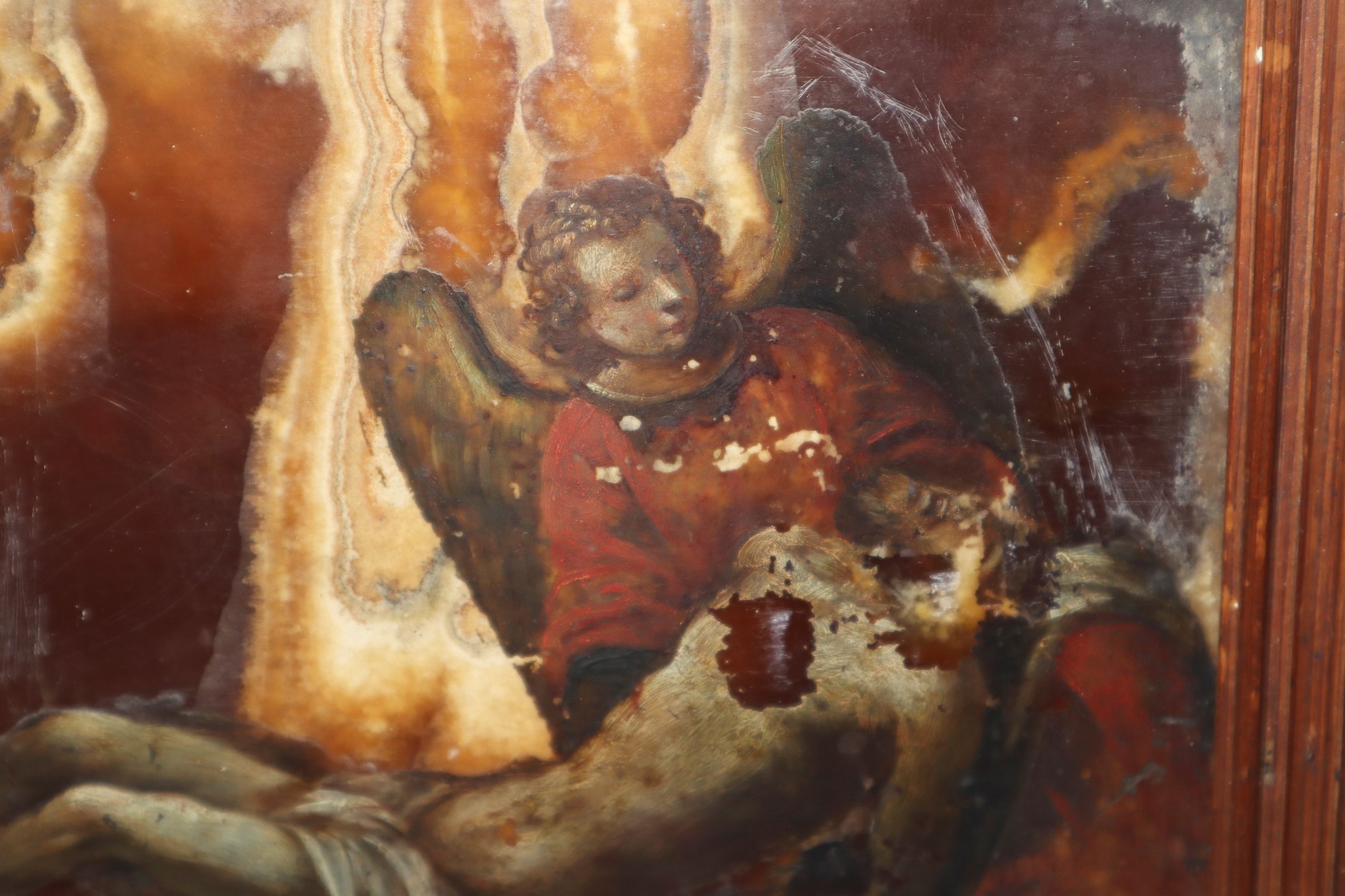 Deposizione di Cristo sorretto da un Angelo, XVII Secolo H cm 16 x 21,8 Olio su Alabastro Caduta di colore