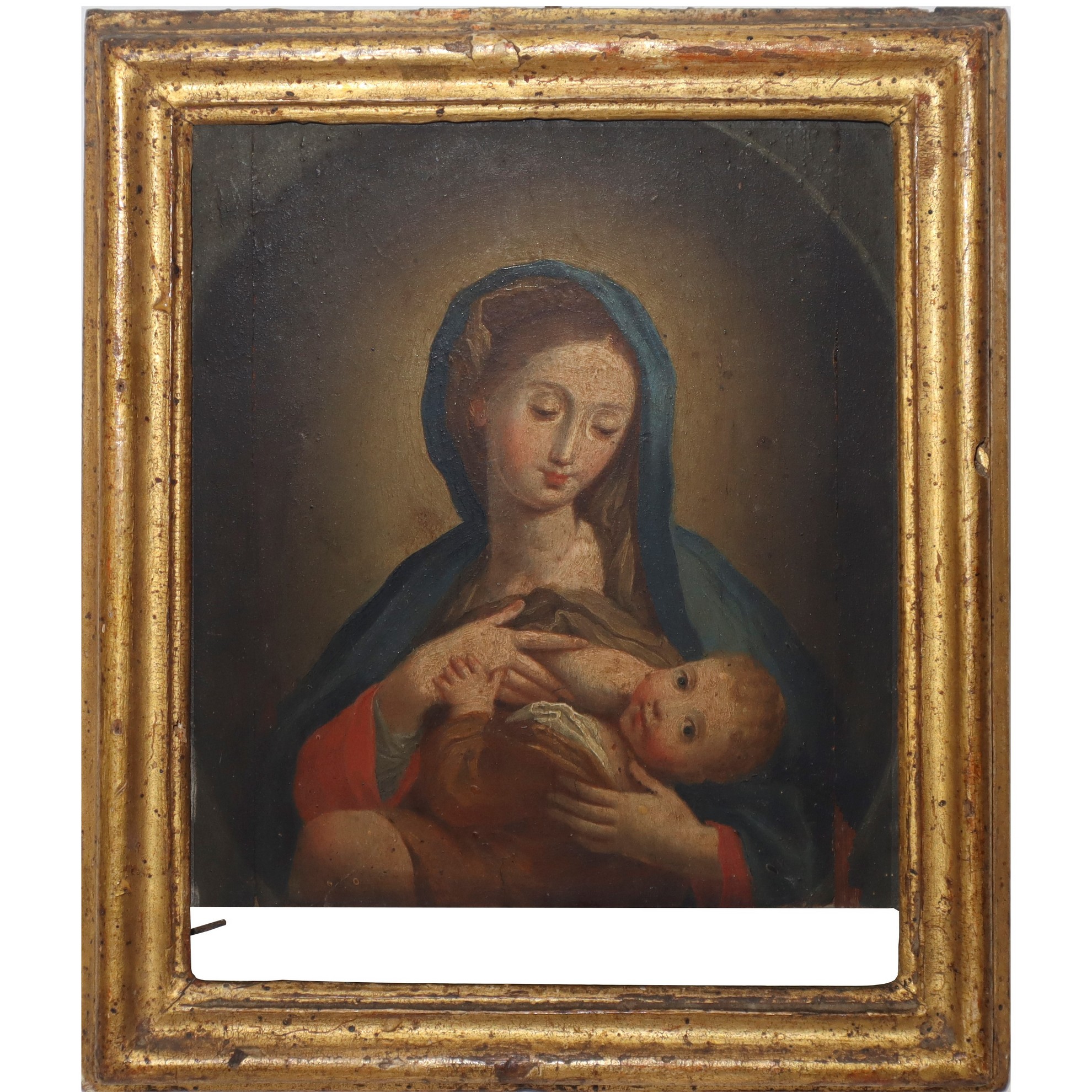 Pietro Paolo Vasta (Acireale 1697-Acireale 1760) - Madonna del latte con bambino Gesù H cm 15 x 13 / in cornice 20 x 17 Olio su tavola Sul retro monogramma V.P.P Pingebat Vasta Pietro Paolo (1697-1760).