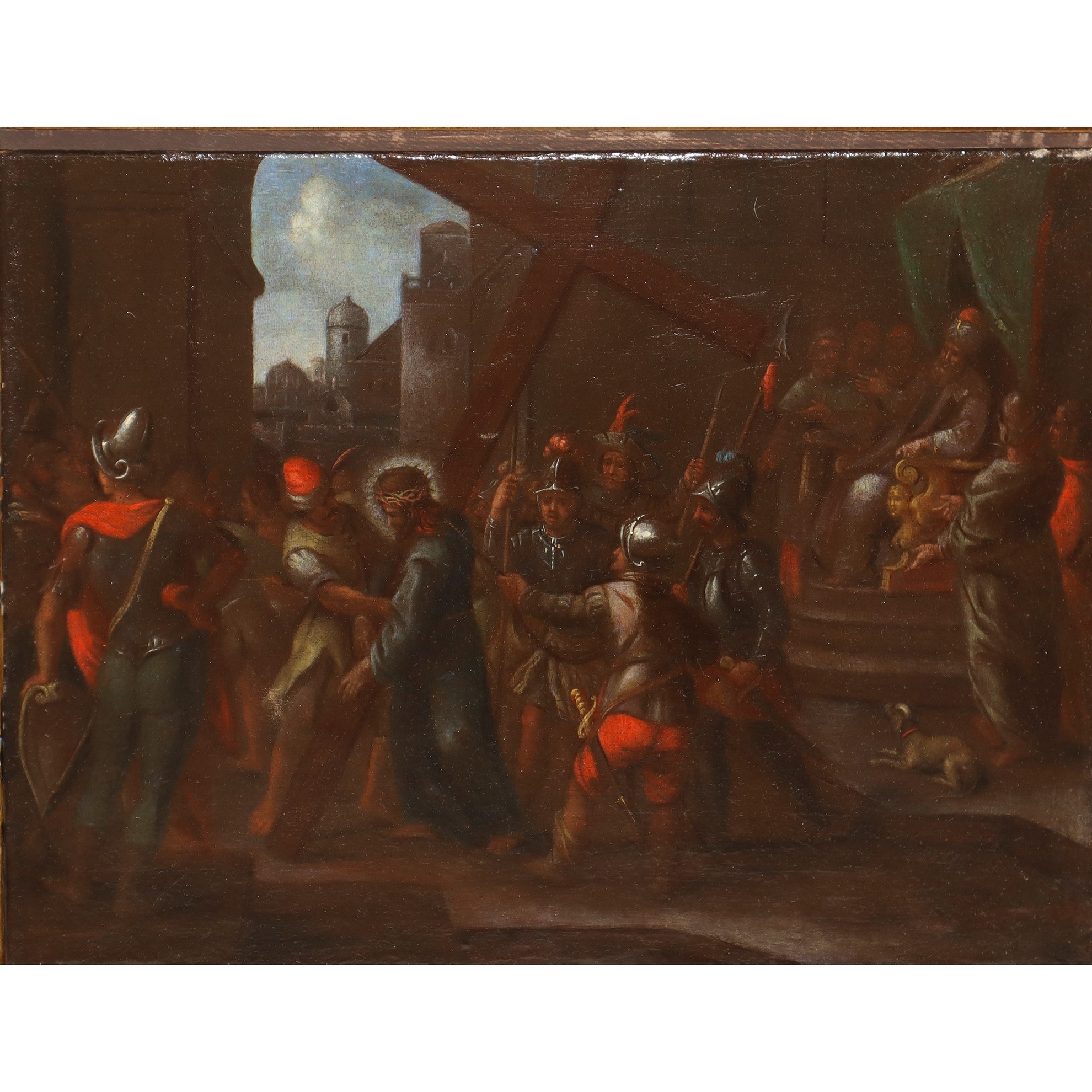 Matteo Ghidoni Detto Matteo de' Pitocchi (Firenze 1626-Padova 1689) - Cristo davanti a Caifa 28x38. in cornice cm 49x57 Dipinto ad olio su tela Corredato da Perizia del Prof .Strinati che valuta l'opera di un valore pari a € 15.000