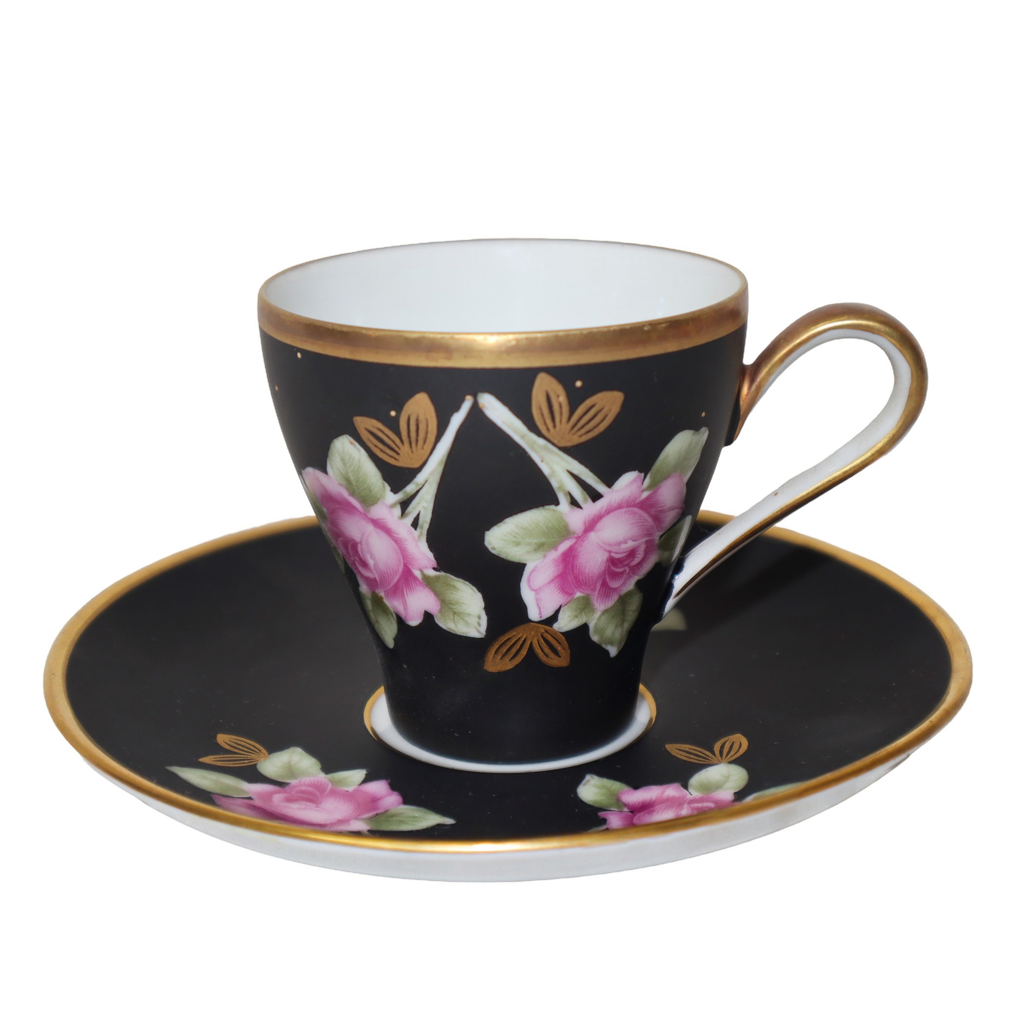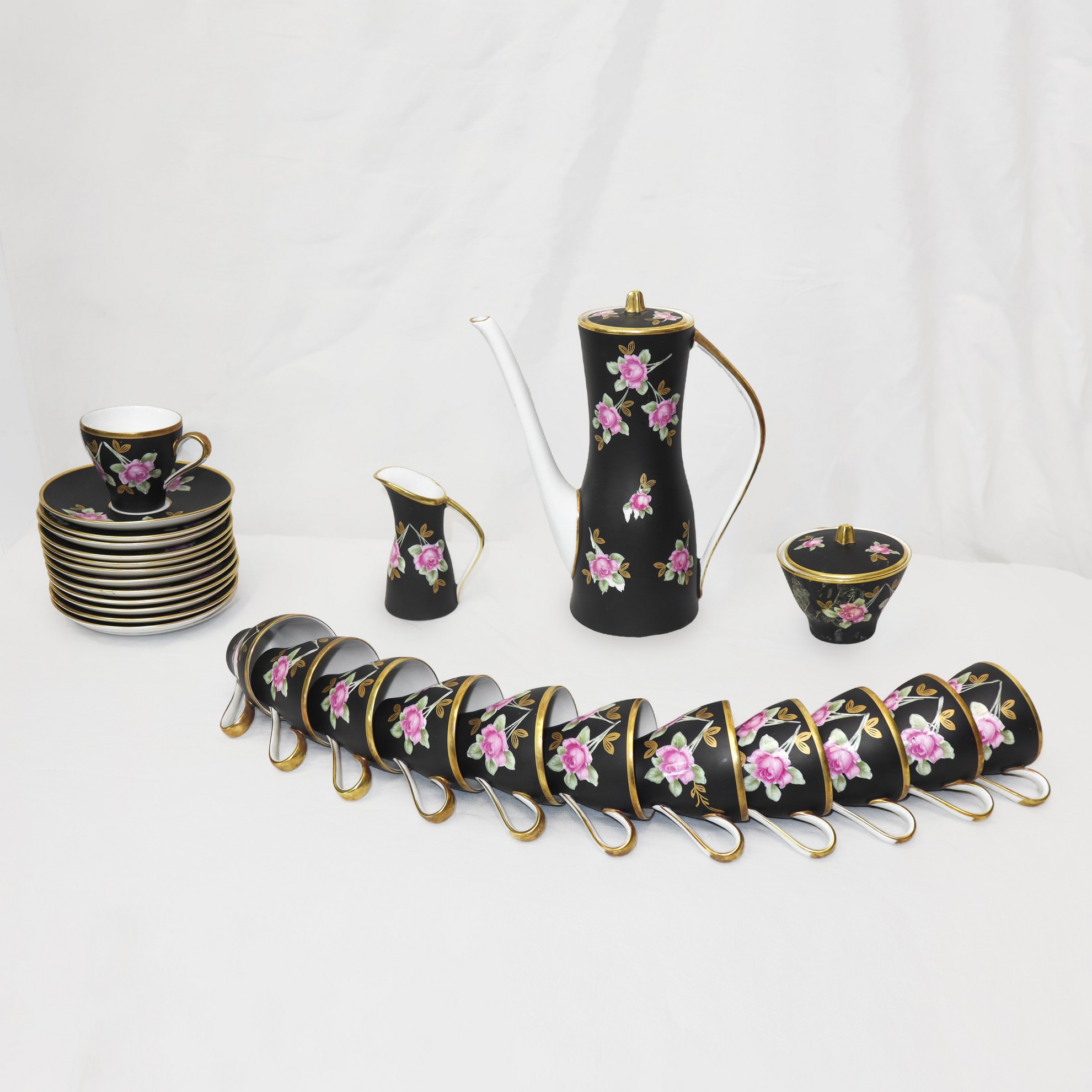 Sevres- Vincennes - Servizio da caffè in porcellana e decorazioni floreali con perfilo in oro, 50s