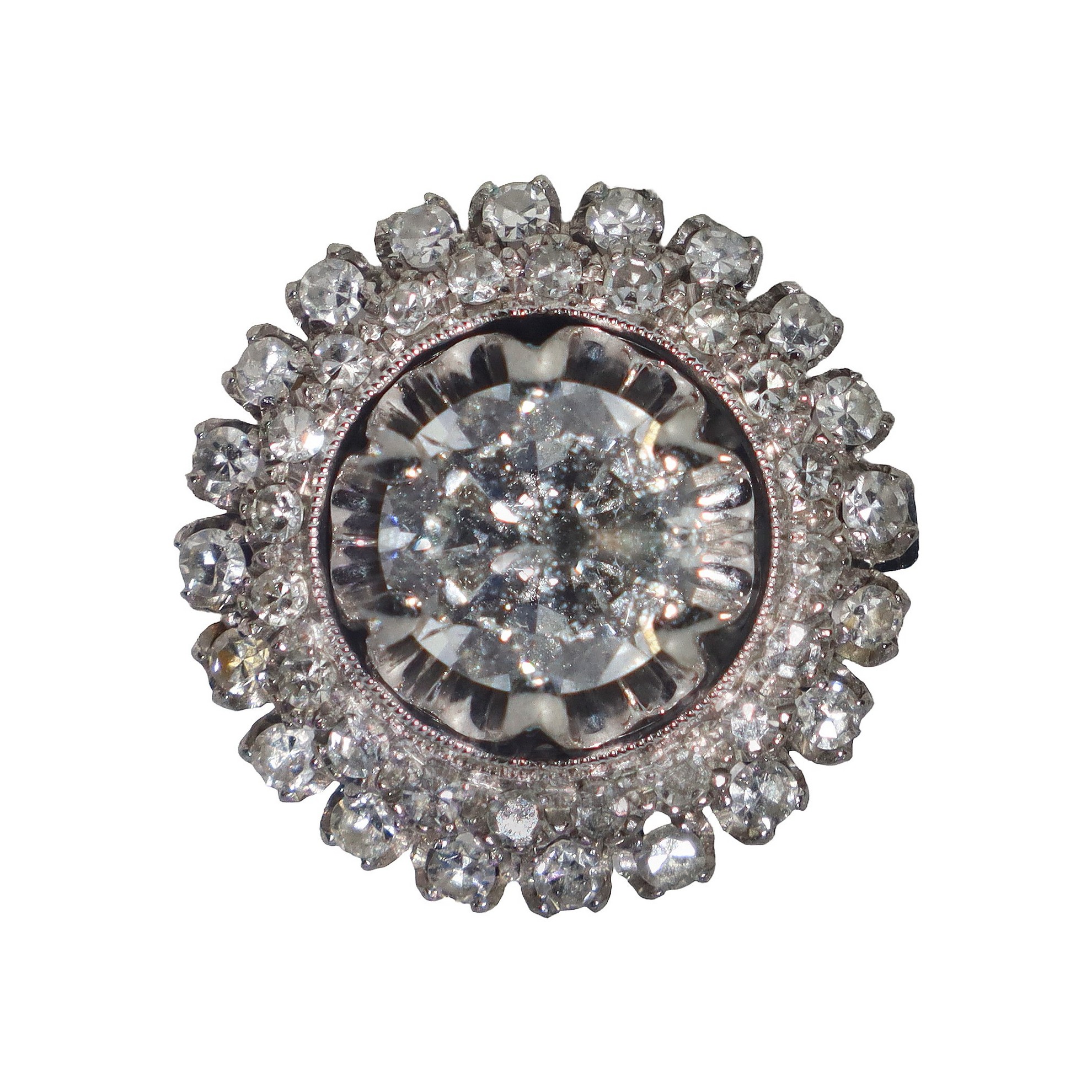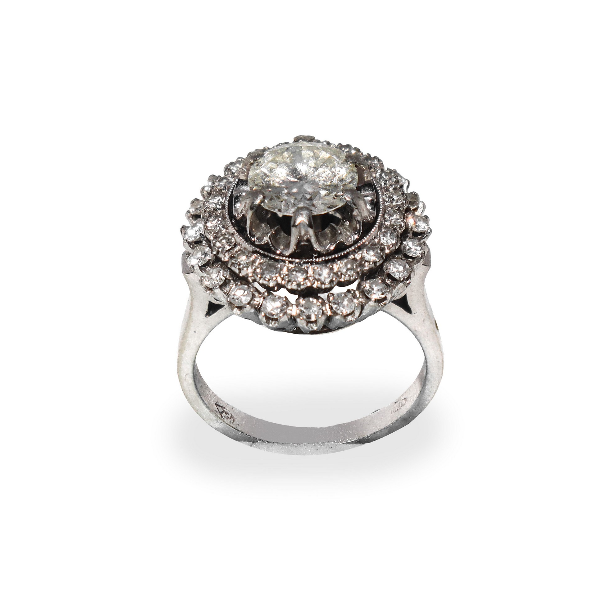 Anello con diamante centrale e 2 ghiere con 40 diamanti taglio antico