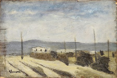 GUIDO FERRONI (1888-1979) Paesaggio - Landscape olio su tavoletta - oil on panel, firmato cm 18x26