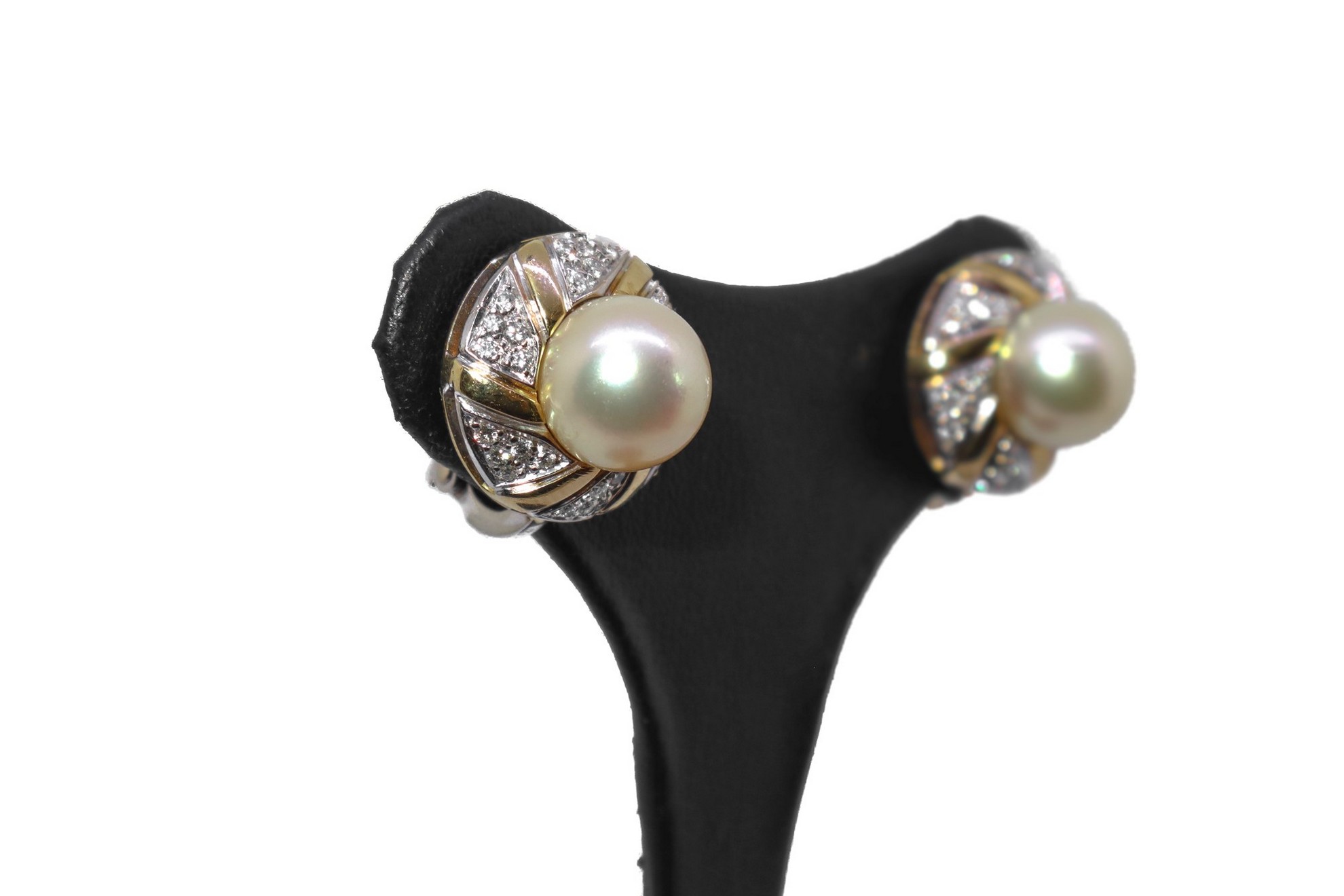 Lotto 308 | Orecchini in oro 18 kt e con perla centrale e diamanti taglio brillante 0,40 kt