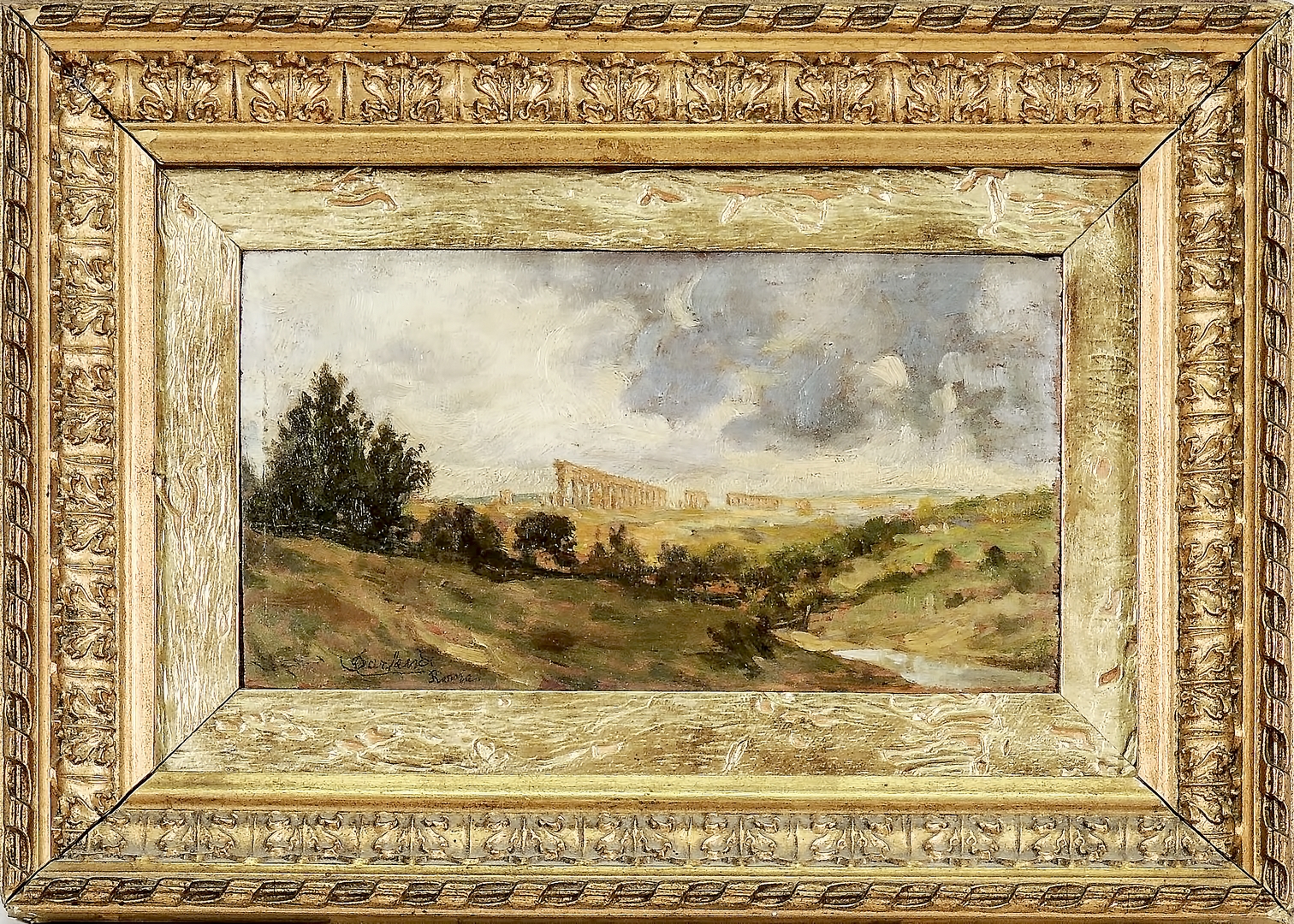 CAMPAGNA ROMANA - ROMAN COUNTRY olio su tavoletta - oil on panel, in cornice cm 9x16
