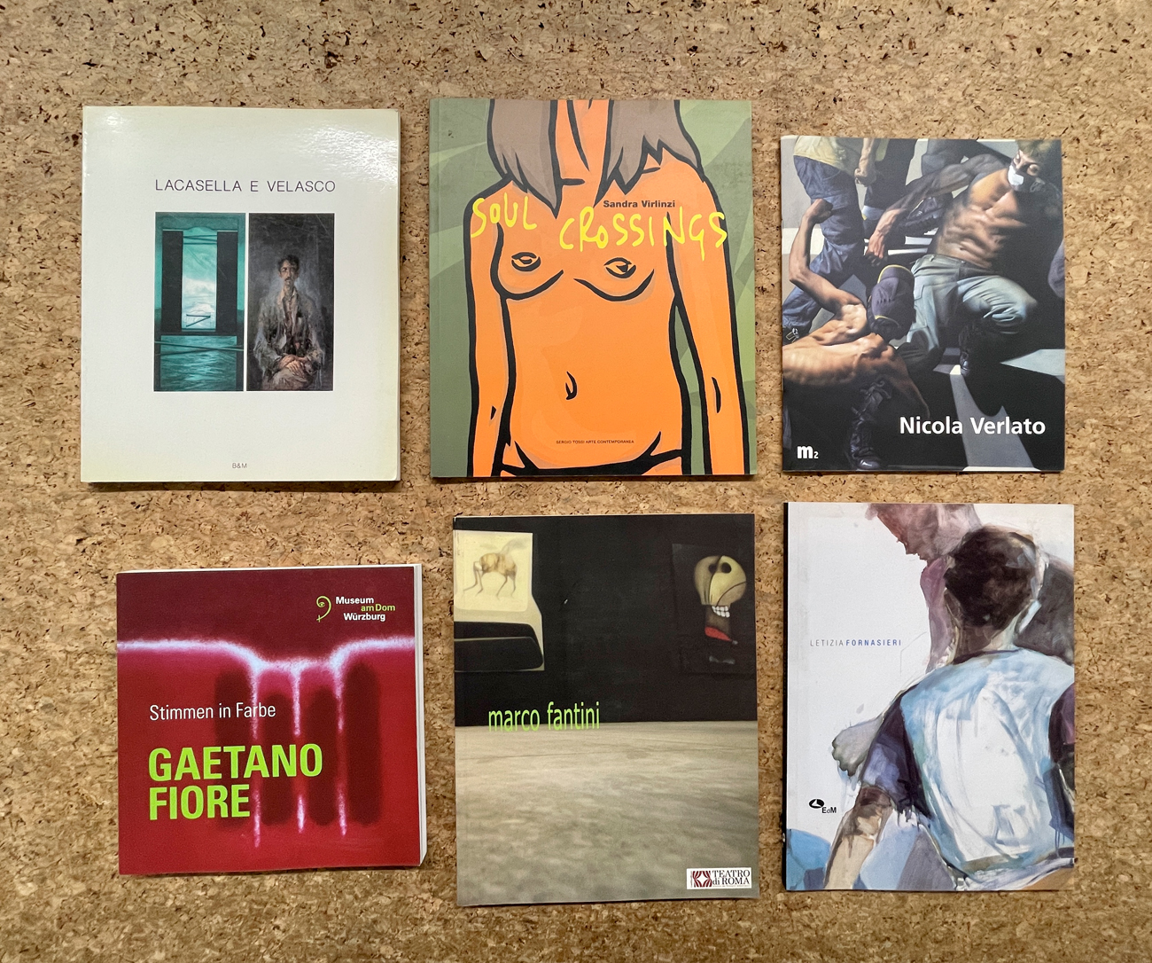 Lotto unico composto da 6 cataloghi riccamente illustrati editi in occasione di esposizioni personali dei seguenti artisti: Gaetano Fiore, Marco Fantini, Letizia Fornasieri, Sandra Virlinzi, Nicola Verlato, Lacasella e Velasco.