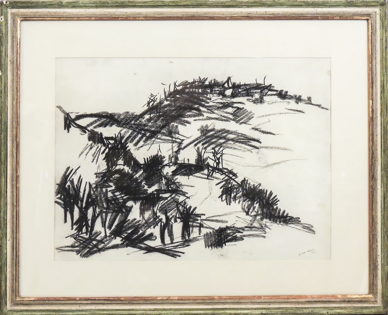 DINO CAPONI (1920-2000) Paesaggio - Landscape carboncino su carta charcoal on paper, firmato e datato 59, in cornice cm 37x50