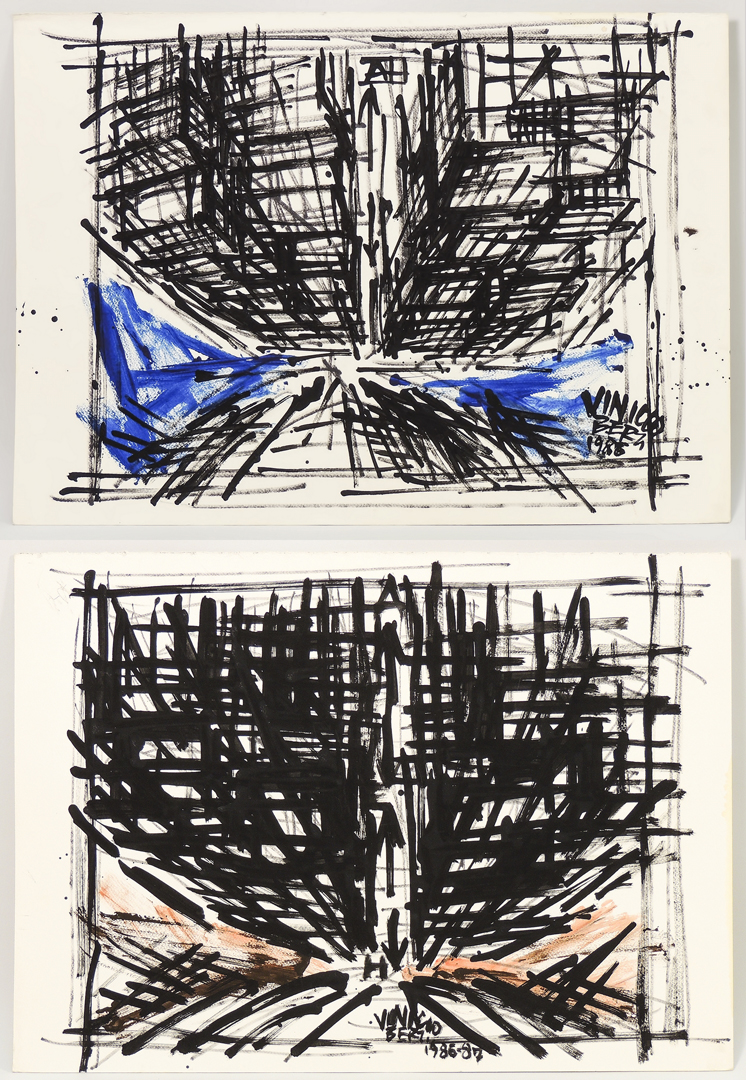 VINICIO BERTI (1921-1991) Composizioni - Compositions coppia di dipinti ad acrilico su cartoncino - a pair of acrilycs on cardboard, firmati e datati 1986 e 1987 cm 50x70