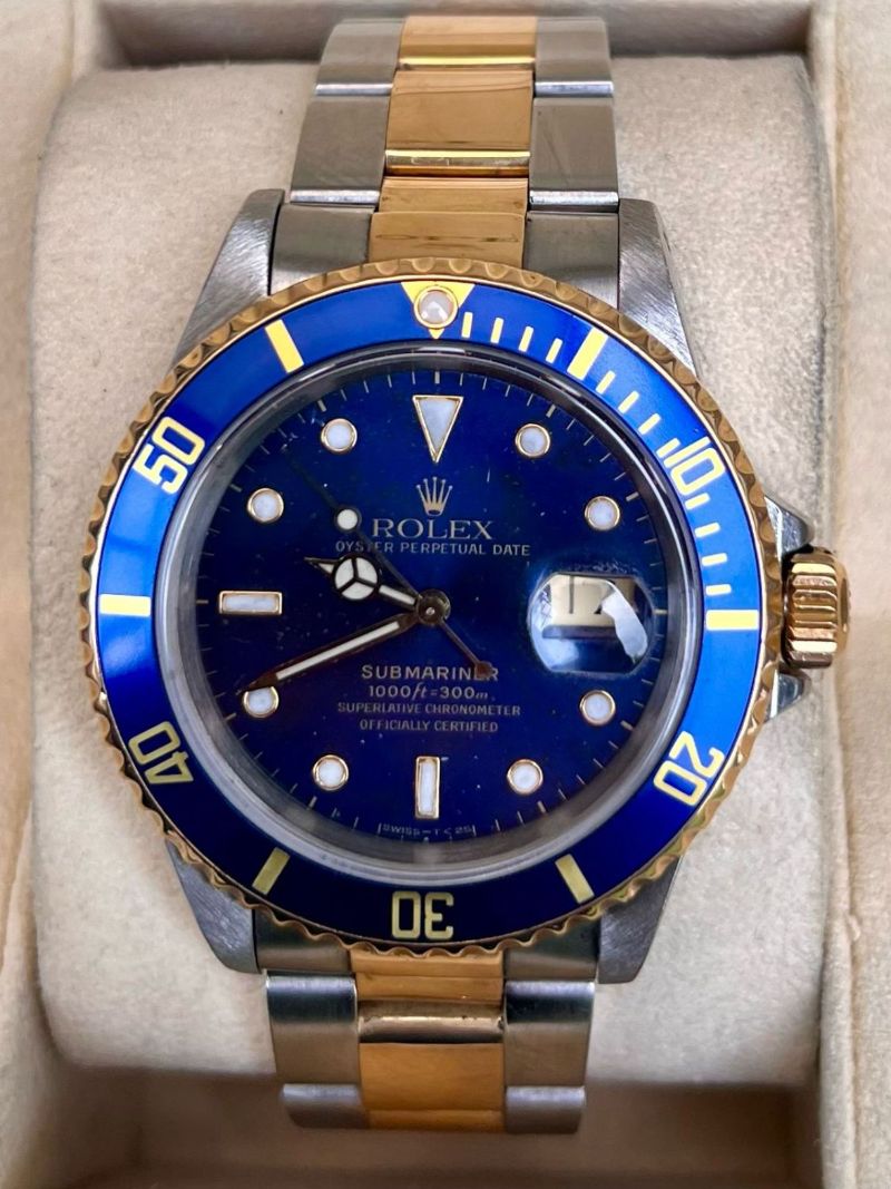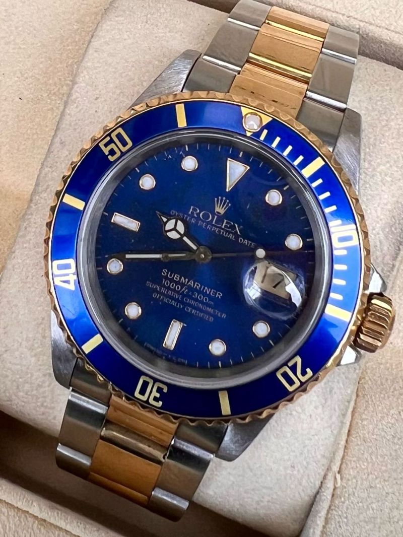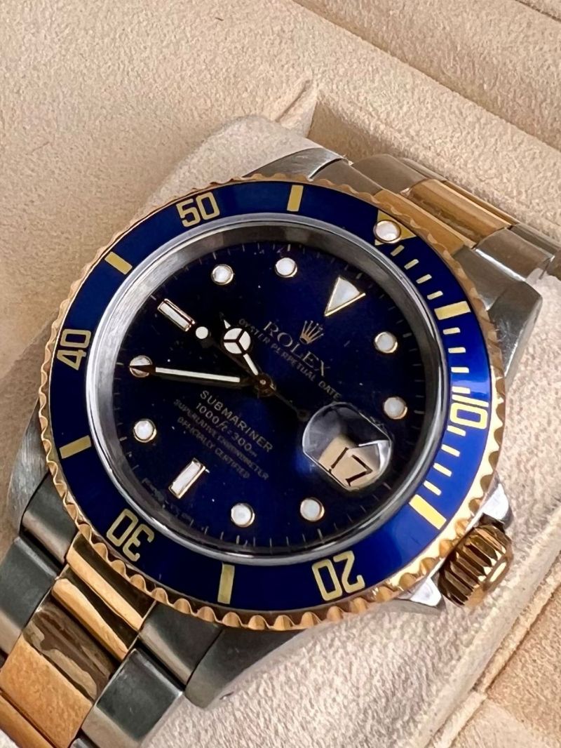 Marca Rolex Modello submariner Quadrante nero Misura 40mm Materiale Acciaio e oro 18ct Condizione Usato Ref 16613 Anno 1989 circa Cassa fori Quadrante bicchierini Cinturino oyster Corredo libretti e scatola di cortesia NO SCATOLA NO GARANZI