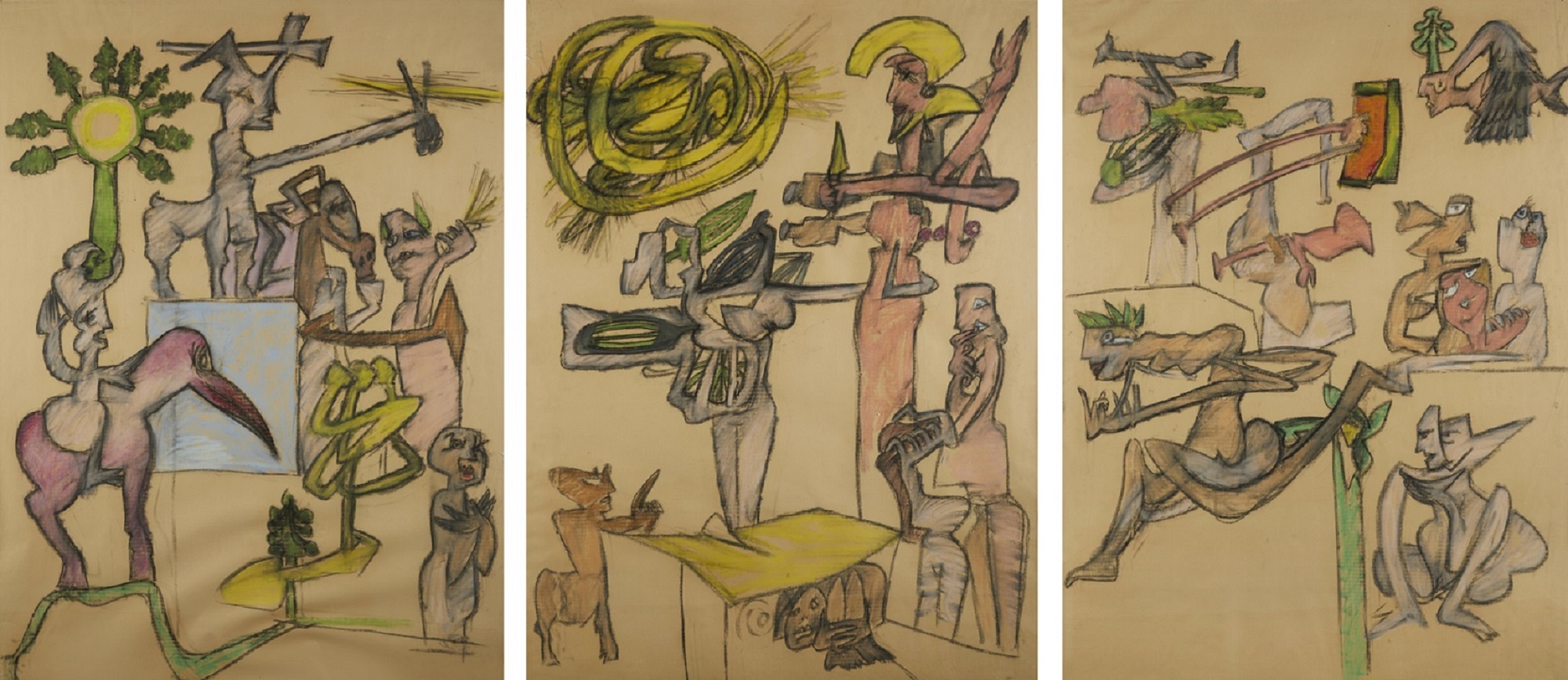 Pubblicazione: Matta, Verbo America, cit. Ispirato da Ruben Darìo, Elio, in Id., Canti di vita e di speranza, 1905, trittico, 1982, tav. 46,47,48.