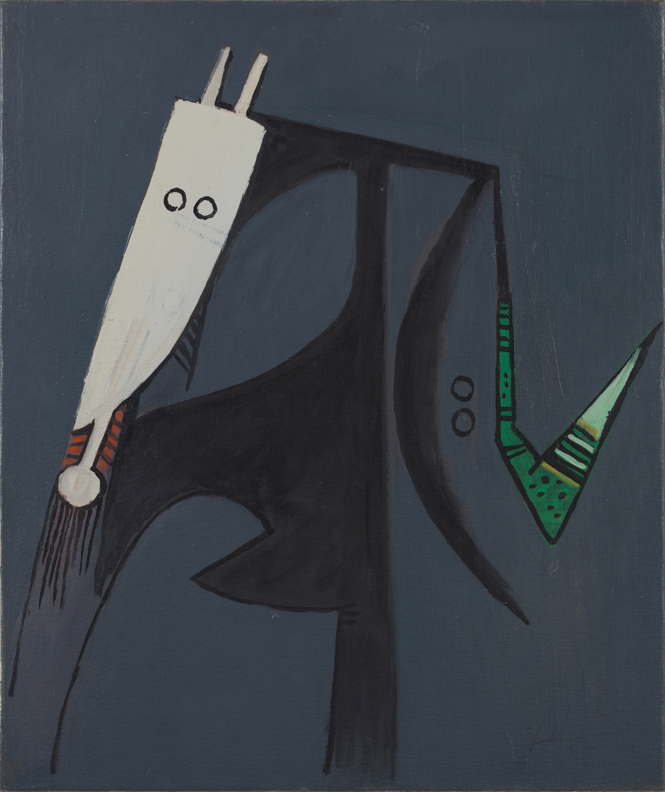 LAM WILFREDO (1902 - 1982) Ritratto. Olio su tela . Cm 55,00 x 65,00. Firma in basso a destra. Al retro cartiglio descrittivo Galleria Nuovo Sagittario, Milano. Autentica dell'artista su fotografia con timbro Galleria Nuovo Sagittario, Milano. Provenienza: Galleria Nuovo Sagittario, Milano; Collezione privata, Rovigo. Pubblicazione: Wifredo Lam: Catalogue raisonné a cura di Eskil Lam (n. 67.07); W.Lam opere scelte a cura di Domenico Porzio, Galleria Nuovo Sagittario, Milano, tav.1. Si ringrazia Eskil Lam per aver confermato l'autenticità dell'opera. Cornice presente