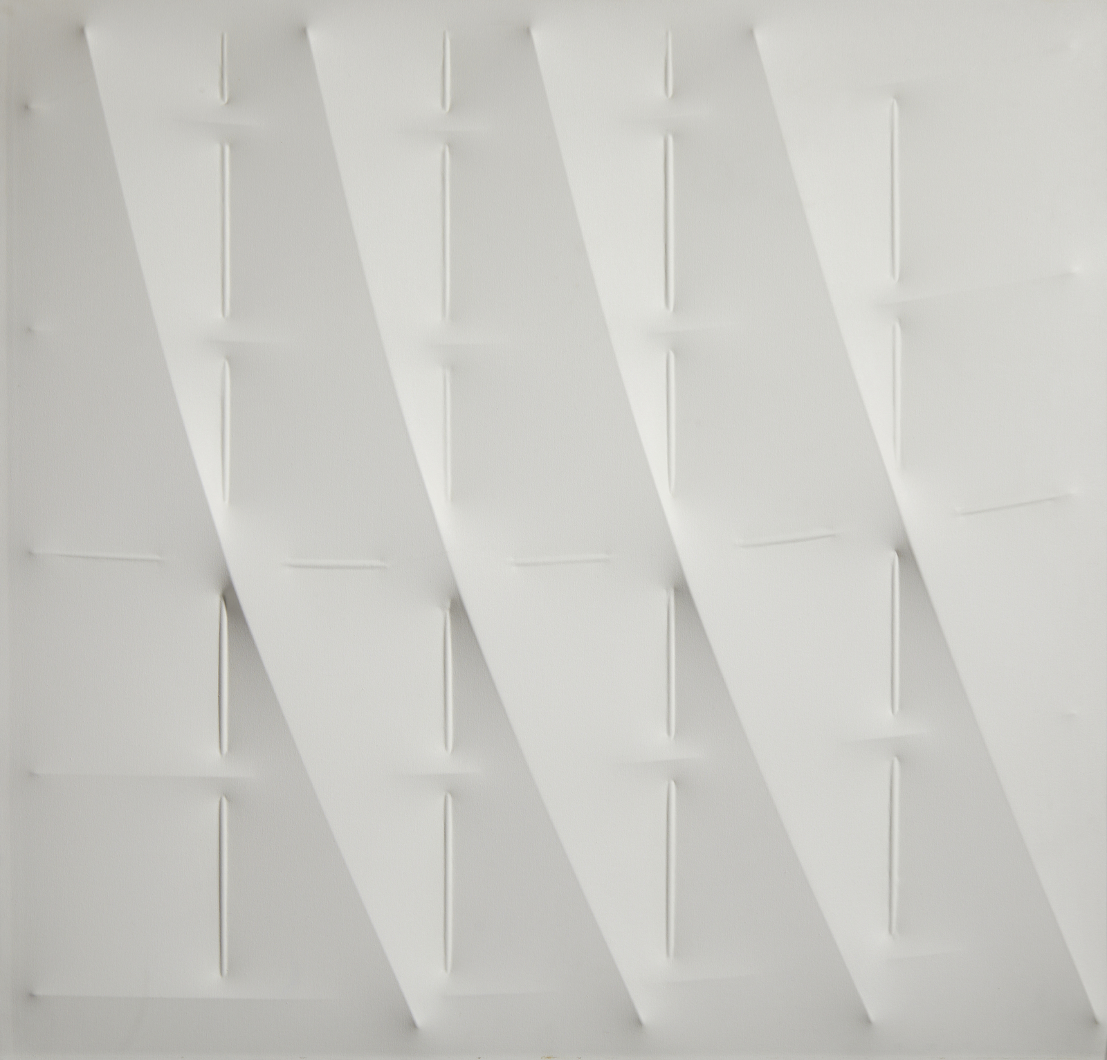 BONALUMI AGOSTINO (1935 - 2013) Bianco. 2007. Acrilico su tela estroflessa. Cm 100,00 x 95,00. Opera archiviata presso l'Archivio Agostino Bonalumi, Milano, come da documentazione fotografica allegata all'opera riportante il relativo numero d'inventario e la firma dell'artista.