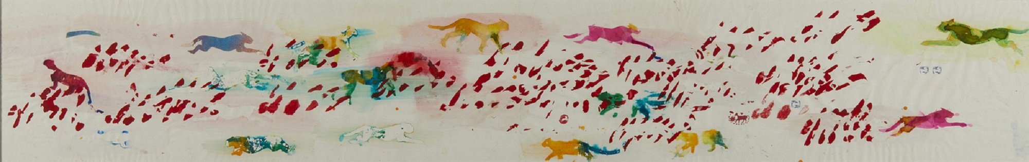 BOETTI ALIGHIERO (1940 - 1994) Senza titolo. 1987. Tecnica mista su carta. Cm 150,00 x 25,00. Opera archiviata presso l'Archivio Alighiero Boetti, Roma, come da documentazione fotografica allegata all'opera riportante il relativo numero d'inventario. Lievi difetti.