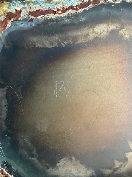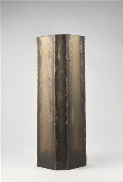 Umbrella stand model "3008 A". Produced by Danese, Milan, 1958ca. Oxidized iron with visible welds. Undeciphered signature under the base. Without the manufacturer's mark. (h 54 cm.) (slight defects)