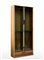 Libreria modello "Zibaldone". Produzione Bernini, Italia, 1974. Legno massello e impiallacciato, ante in vetro verde a scorrimento verticale su cinghie a contrappeso. (cm 115x258x40)
