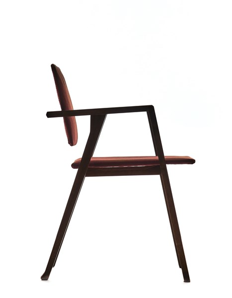 Pair of chairs model "PT1 Luisa". Produced by Poggi, Pavia, 1950-1955. Solid wood with red fabric upholstery. "Golden compass" prize 1955. (55x77x55 cm.) (slight defects, small shortcomings and alterations)