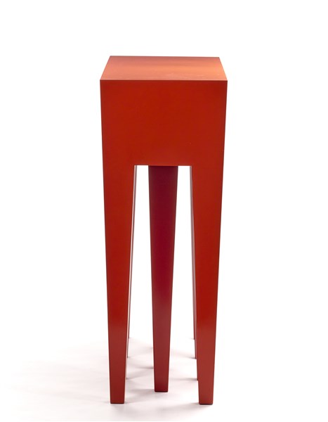 Console model "Louis05". Produced by Dilmos Edizioni, Milan, 2005ca. Red lacquered metal. (151x130x51 cm.) (slight defects)