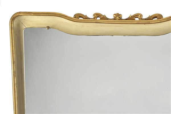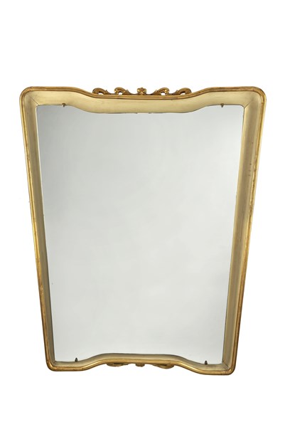 Specchiera con cornice in legno massello laccato bianco e dorato, decori in legno intagliato a volute. Esecuzione Arredamenti Borsani, Varedo, 1948ca. (cm 98x118,5) (lievi difetti)