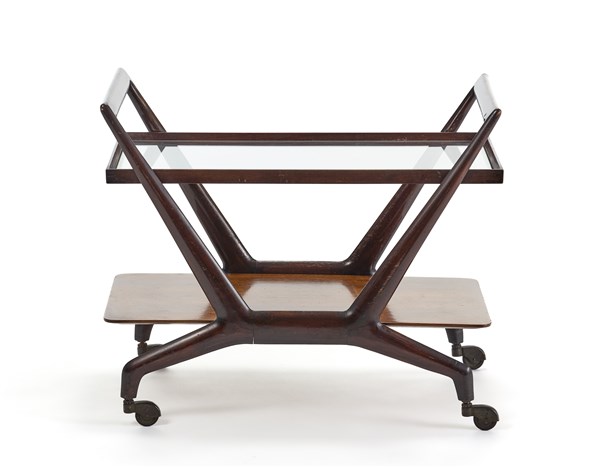 Cart model "1949.8B". Execution by F.lli Rizzi,, 1950ca. Solid wood, crystal glass. (82x68.5x44 cm.) (defects)