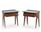 Coppia di comodini ad un cassetto. Cantù, 1950ca. Legno massello e impiallacciato. Pannelli impiallacciati a spina di pesce.