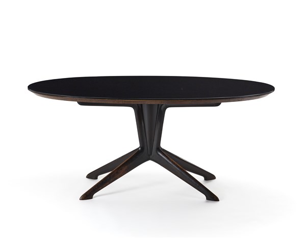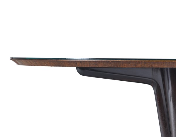 Tavolo modello "1948.2". Esecuzione F.lli Rizzi, Intimiano, 1950ca. Legno massello ebanizzato, piano in opalina nera. (cm 190x79,5x100) (difetti)