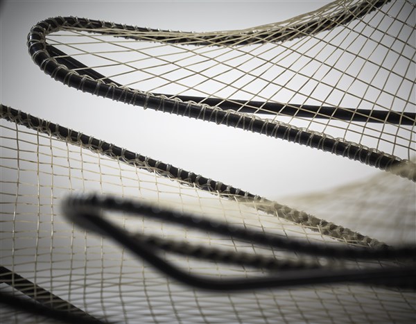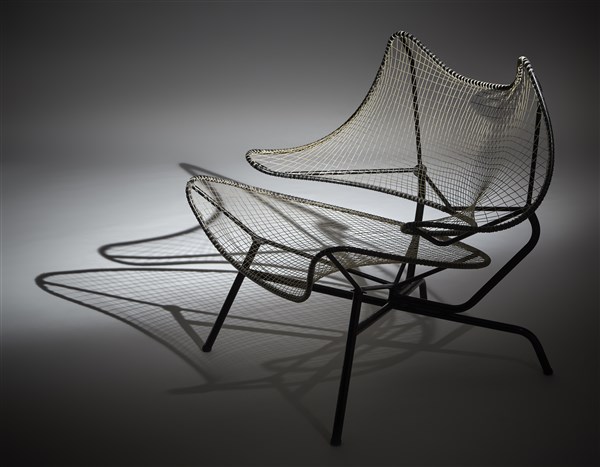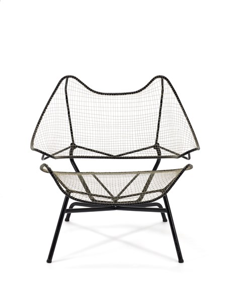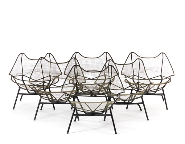 Sei poltrone modello "Artigianato" della serie "Monofilo". Commercializzazione Emilio Paoli, Firenze, 1953-55. Tubi di ferro verniciato nero e filo di nylon. Segnalazione al Compasso d'oro del 1955. (cm 89x86x77) (lievi difetti)