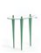 Tavolino tripode. Parigi, 1970ca. Piano in vetro, gambe in legno verniciato verde acqua, perni a fiamma in bronzo. (cm 77x78x39)