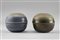 Pair of small boxes. Manufacture of Ceramiche Arcore, Italy, 1970s. Glazed terracotta in shades of blue and green/brown. Monogrammed "CA" under the base. (h 8 cm.) (defects)
